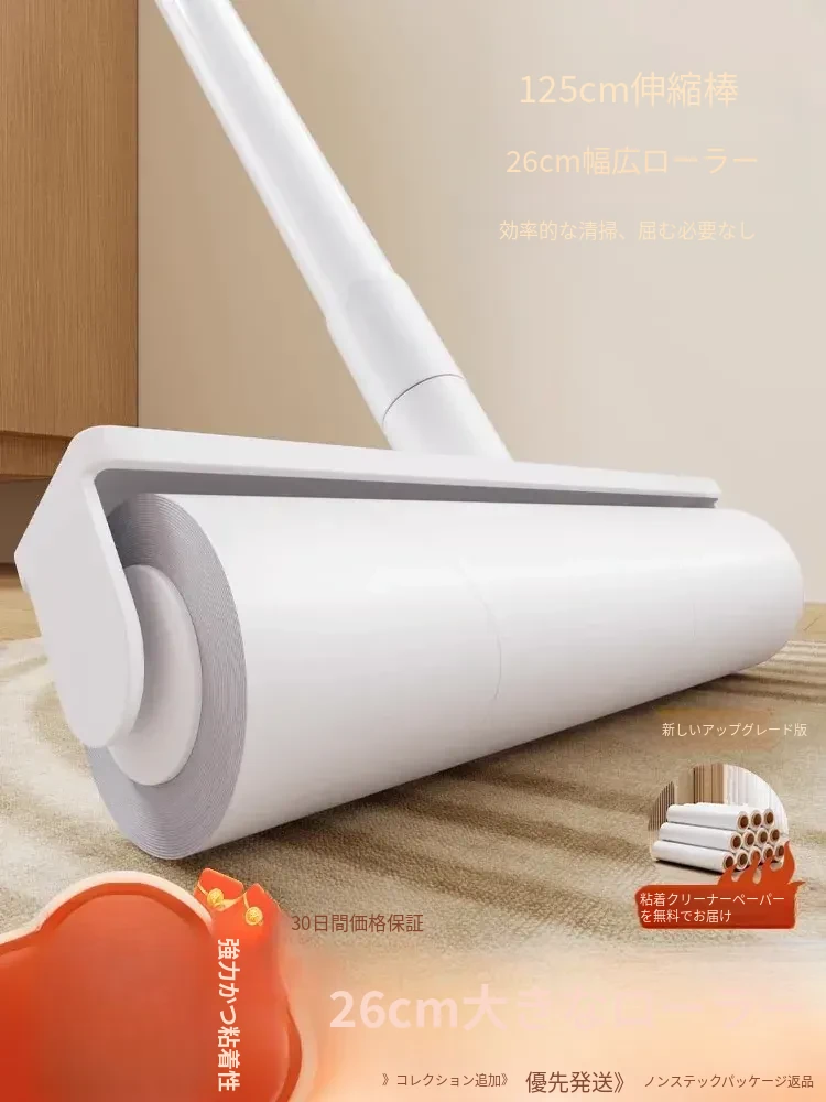 ロングハンドル毛取りローラー 大型粘着式 ほこりや猫の毛を簡単にキャッチ!ベッドや床の掃除に最適な剥がせる紙タイプの便利アイテム!