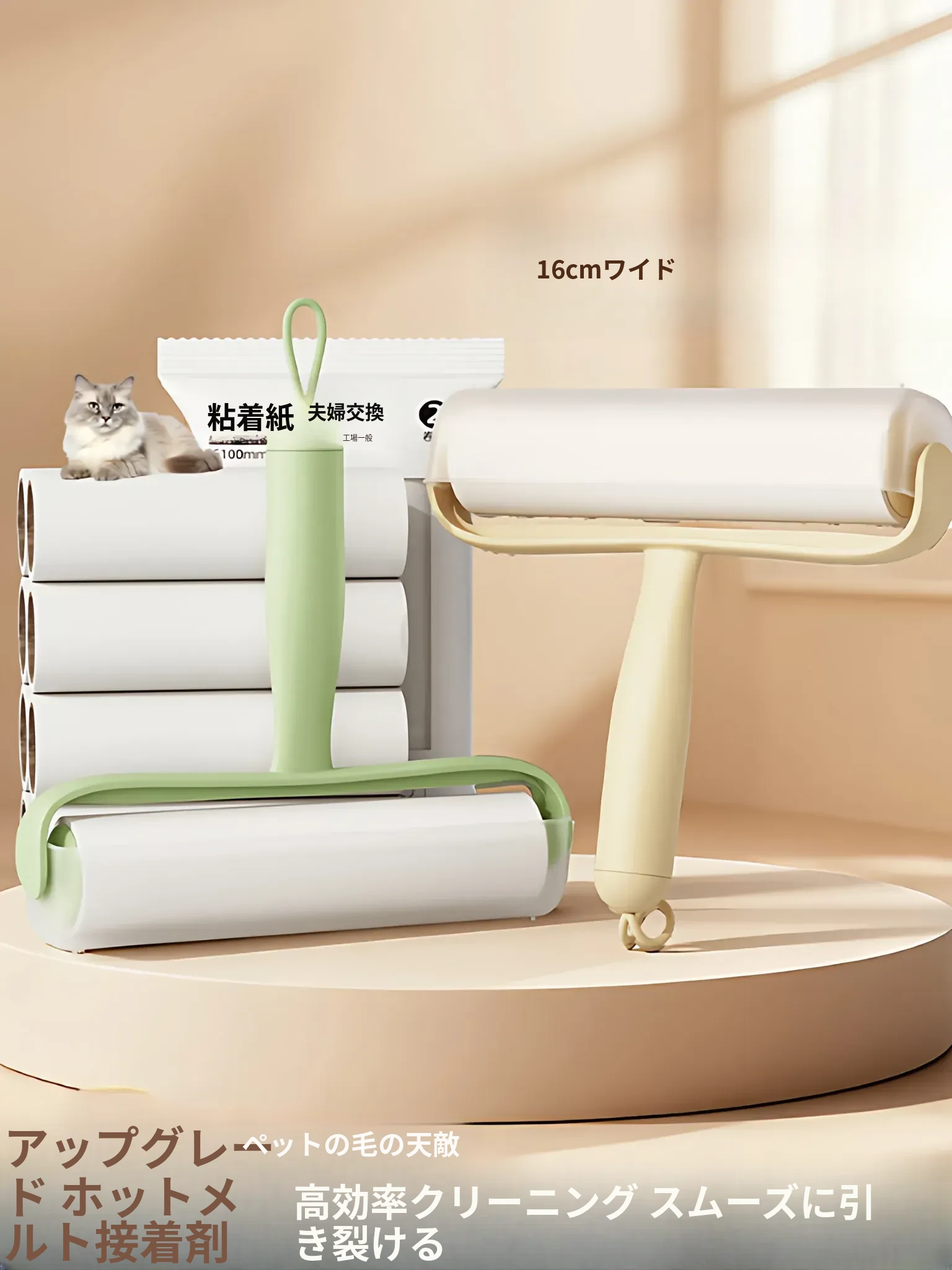 16cm 粘毛ローラー 替えテープ付き!猫の毛や衣服の毛、寝具のホコリを一瞬でキャッチ!清掃が楽々な便利アイテム!