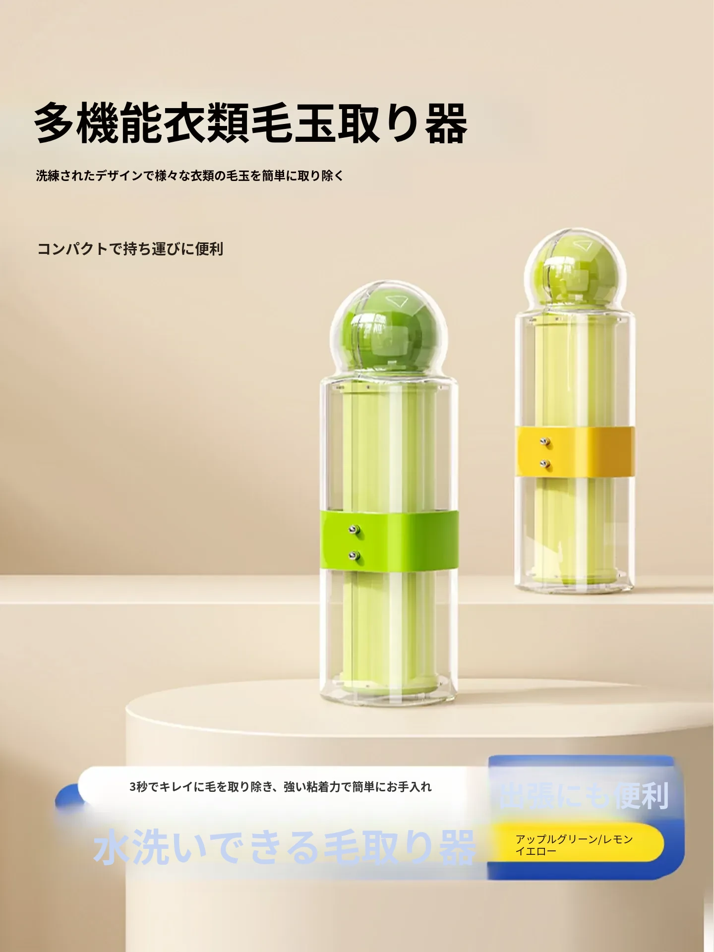 洗える毛取りローラー - 旅行に便利!衣類を傷めずに毛やピリングを簡単に除去。持ち運びにも最適なクリーニングツールで、いつでもどこでも清潔な服を保ちましょう!