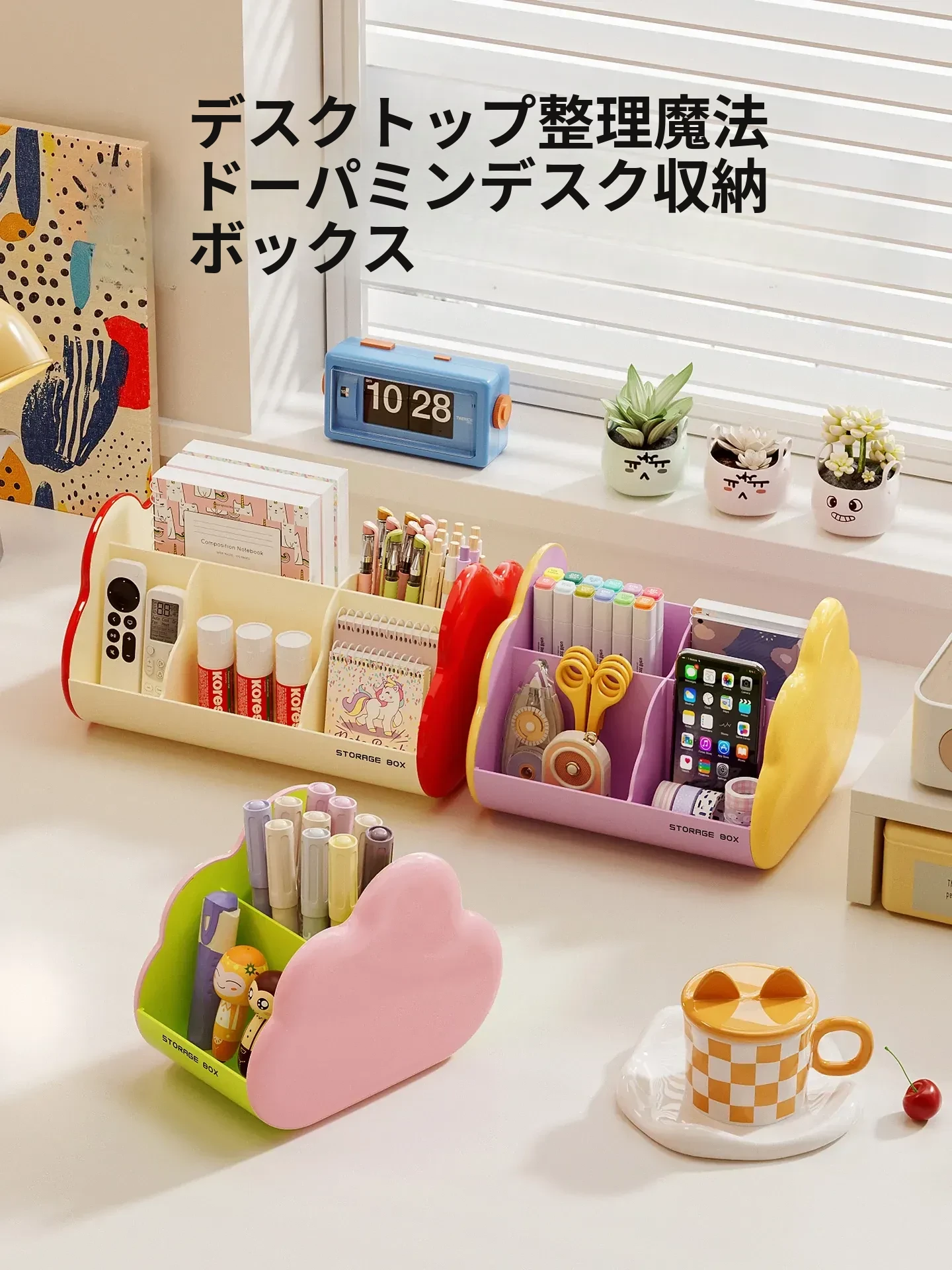デスク収納ボックス 学生寮・オフィスに最適!多機能・かわいいデザインの回転式防塵カバー付き収納ボックス。整理整頓が楽しくなるアイテムです!