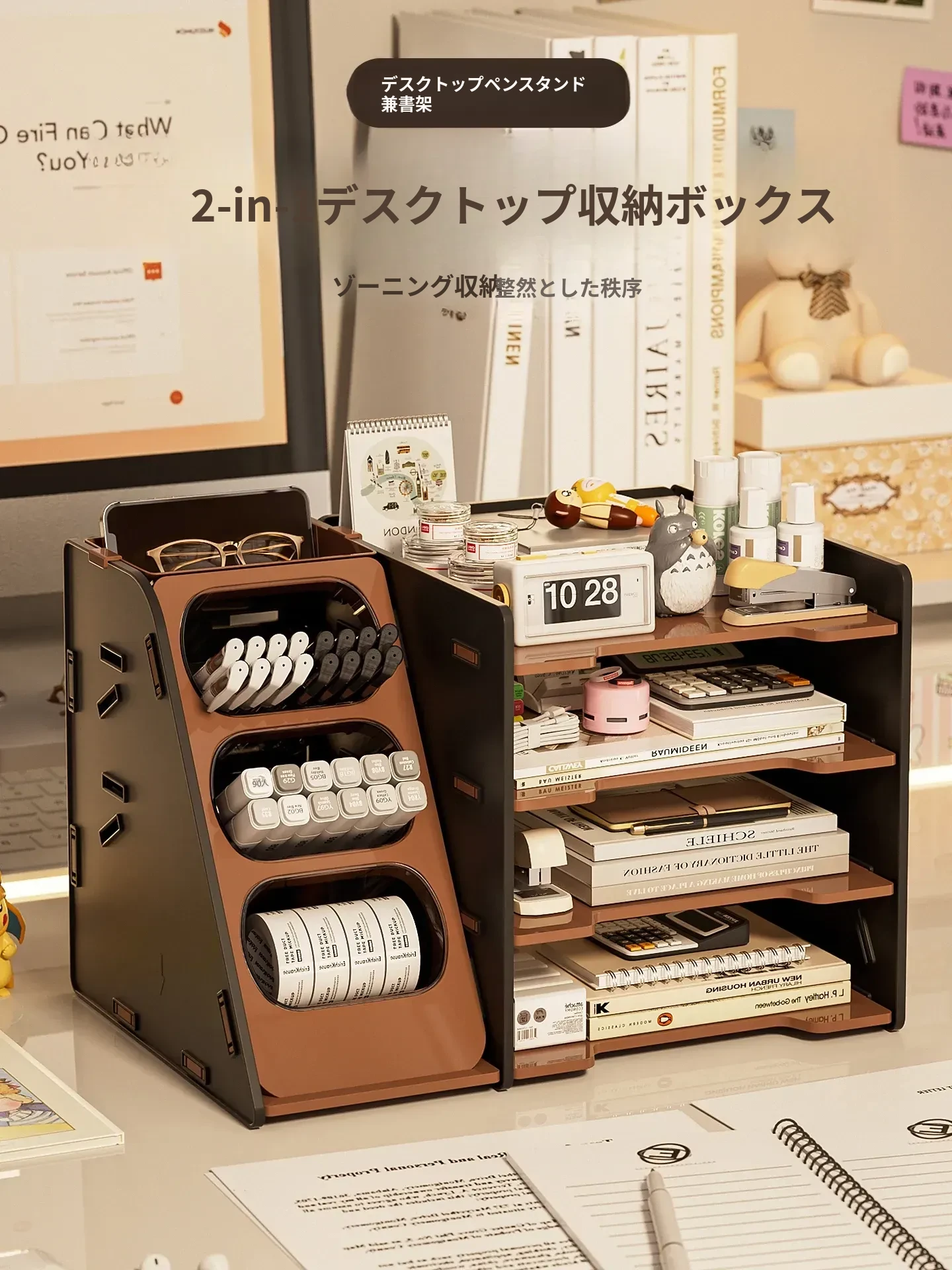 デスク用収納ボックス - 小物整理に最適!スキンケアや化粧品を美しく収納できる日本風デザインの引き出し型ラック。使いやすく、あなたの美しさを引き立てるアイテムです。