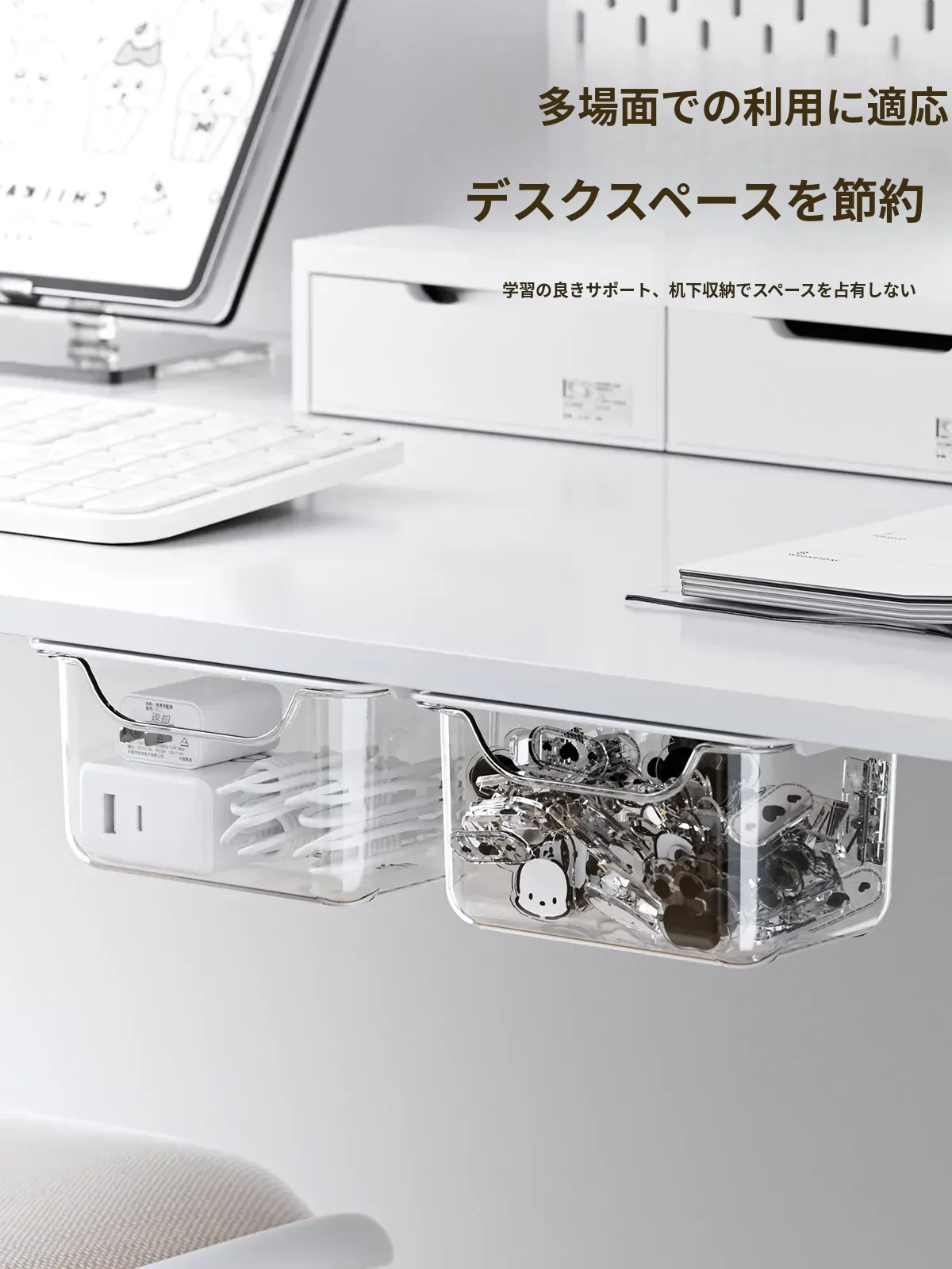 デスク下隠し引き出し収納ボックス 壁掛け整理ボックス オフィスデスク用収納マジック デスク上スペースを有効活用!