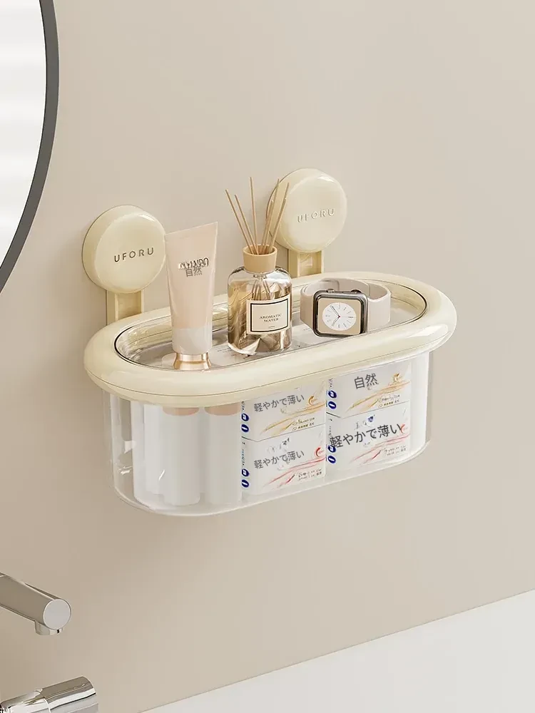 吸盤式収納ボックス - 壁掛け&卓上両用、穴あけ不要!防水カバー付きの大容量トイレ収納ラックで、すっきり整理整頓。おしゃれで便利なアイテムを手に入れて、毎日の生活をもっと快適に!