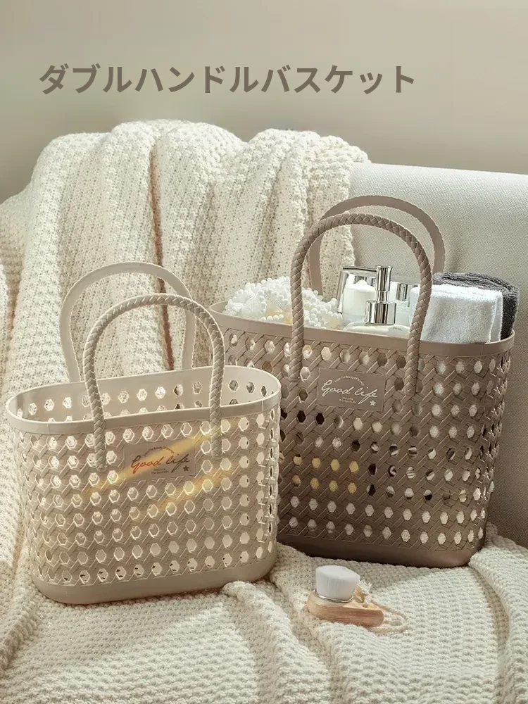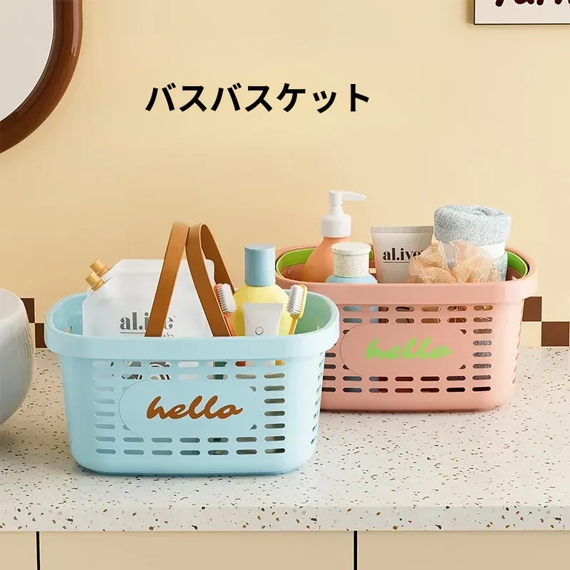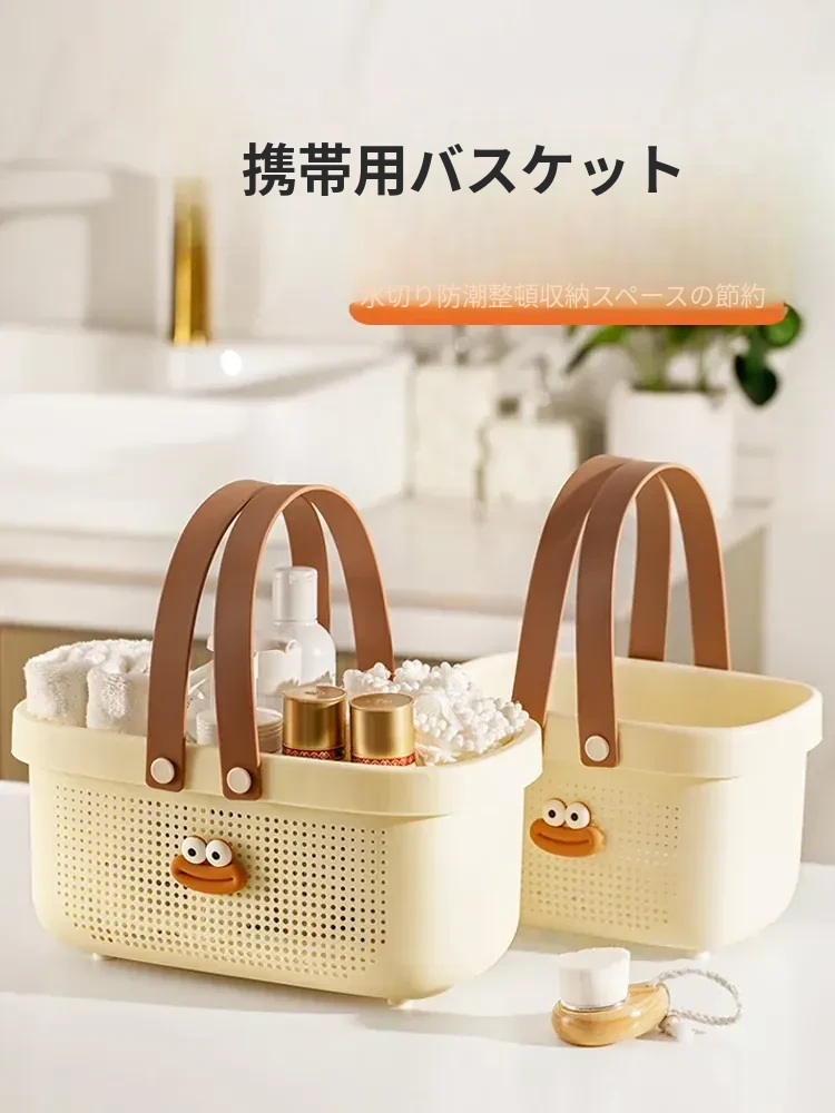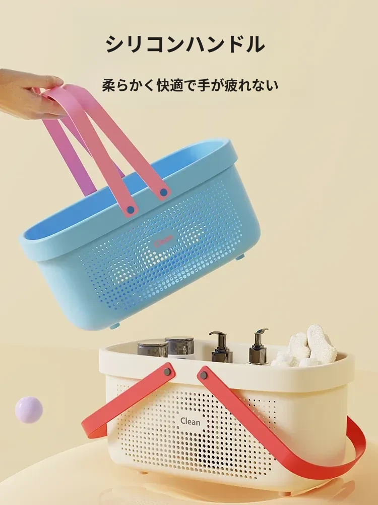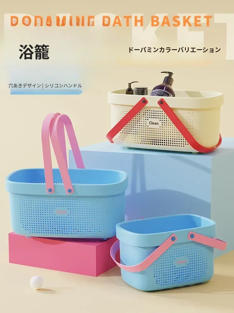 おしゃれなデザインの多機能バスケット!ドパミンを感じるリラクゼーションアイテム、学生寮やバスルームにぴったりの収納バスケット。お風呂道具や洗面用品をスッキリ整理できる便利なハンドル付き!