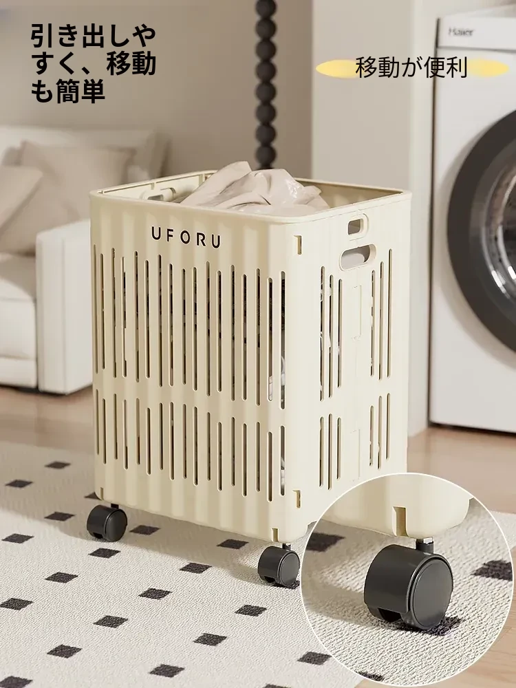 折りたたみ式大容量洗濯バスケット - おしゃれで機能的な家庭用衣類収納カート!洗面所での使い勝手抜群、便利なアイテムでお部屋をスッキリ整理!