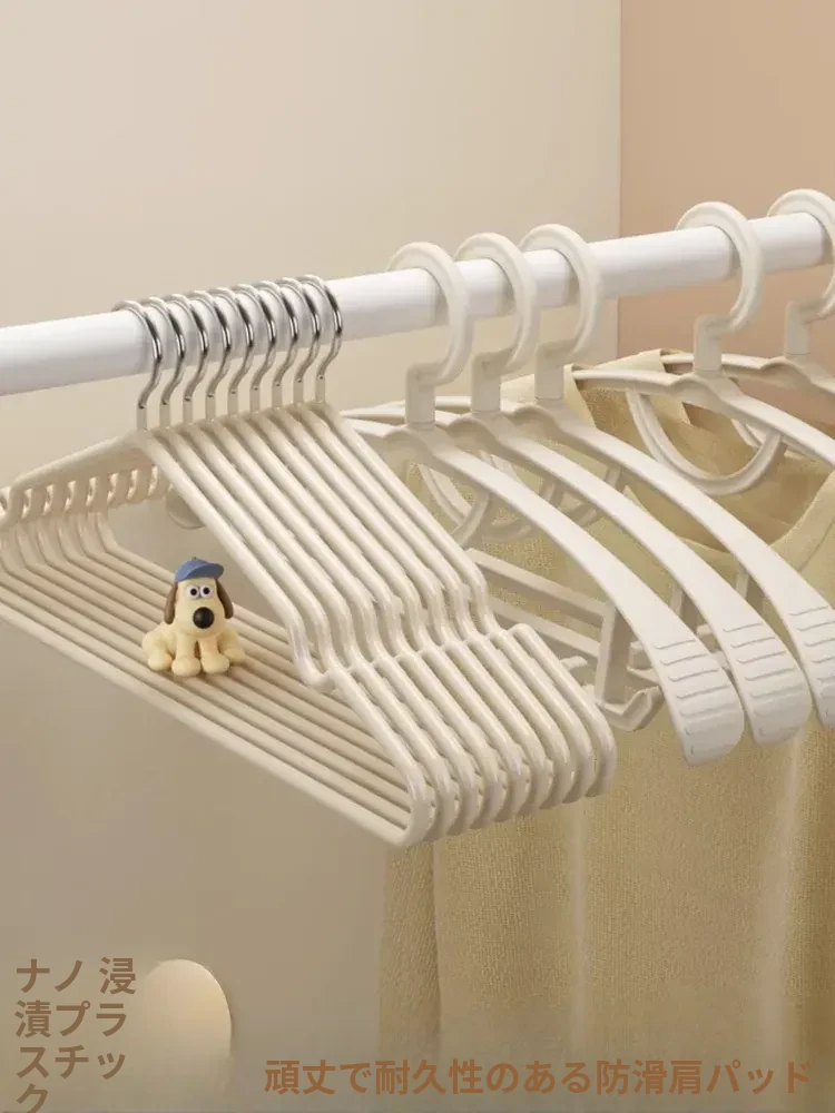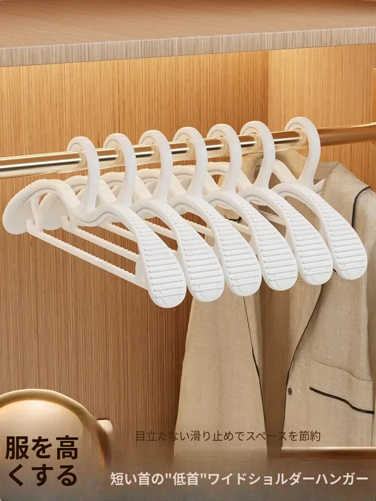 滑り止め付き!肩幅に優しい家用衣類ハンガー - 大衣やスーツも安心して掛けられる無痕ハンガー。学生寮やクローゼットに最適!衣服をしっかり支えて、シワになりにくい!