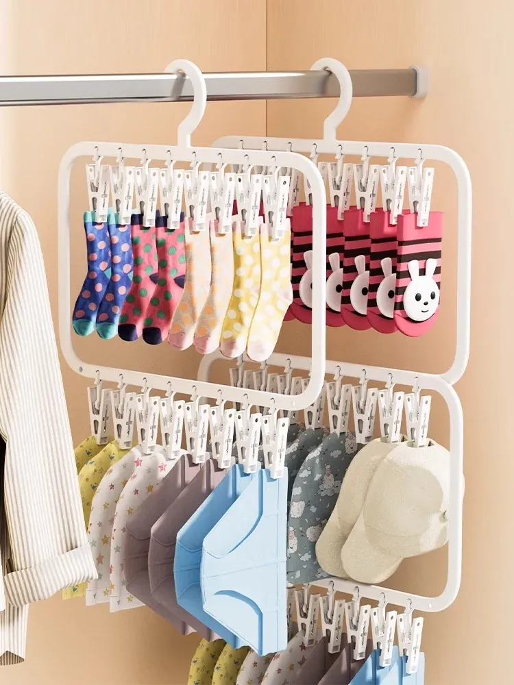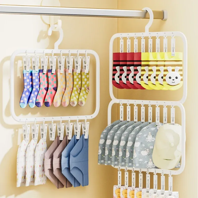 多機能ソックスハンガー - 家庭用大容量の靴下干し神器!学生や子供の寮にも最適なフック付きで、収納も簡単。おしゃれで便利なソックスラックで、いつでも清潔に靴下を保ちましょう!