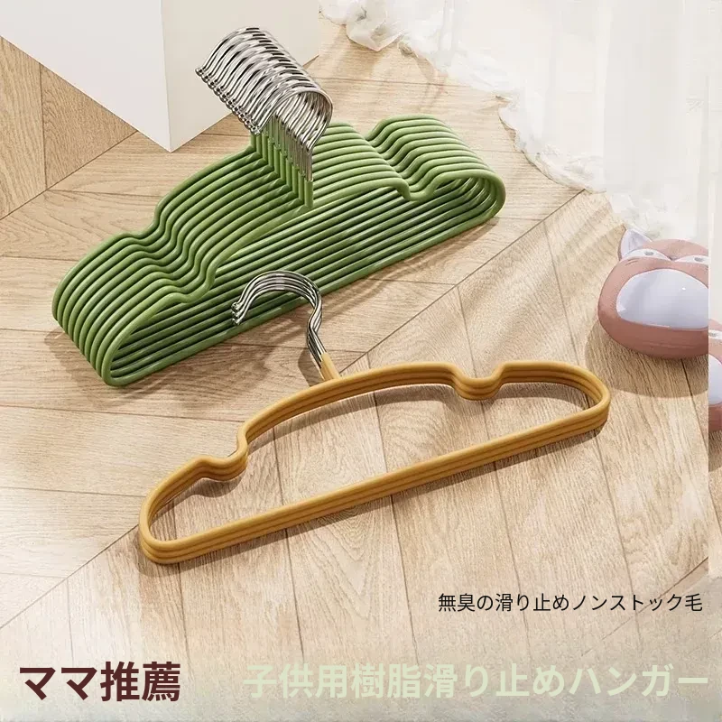 子供用太めの滑り止めハンガー - 新生児や幼児のための無痕で家でも使える衣類干し専用ハンガー!大切な衣類をしっかりサポートし、かわいらしいデザインでお部屋もおしゃれに!