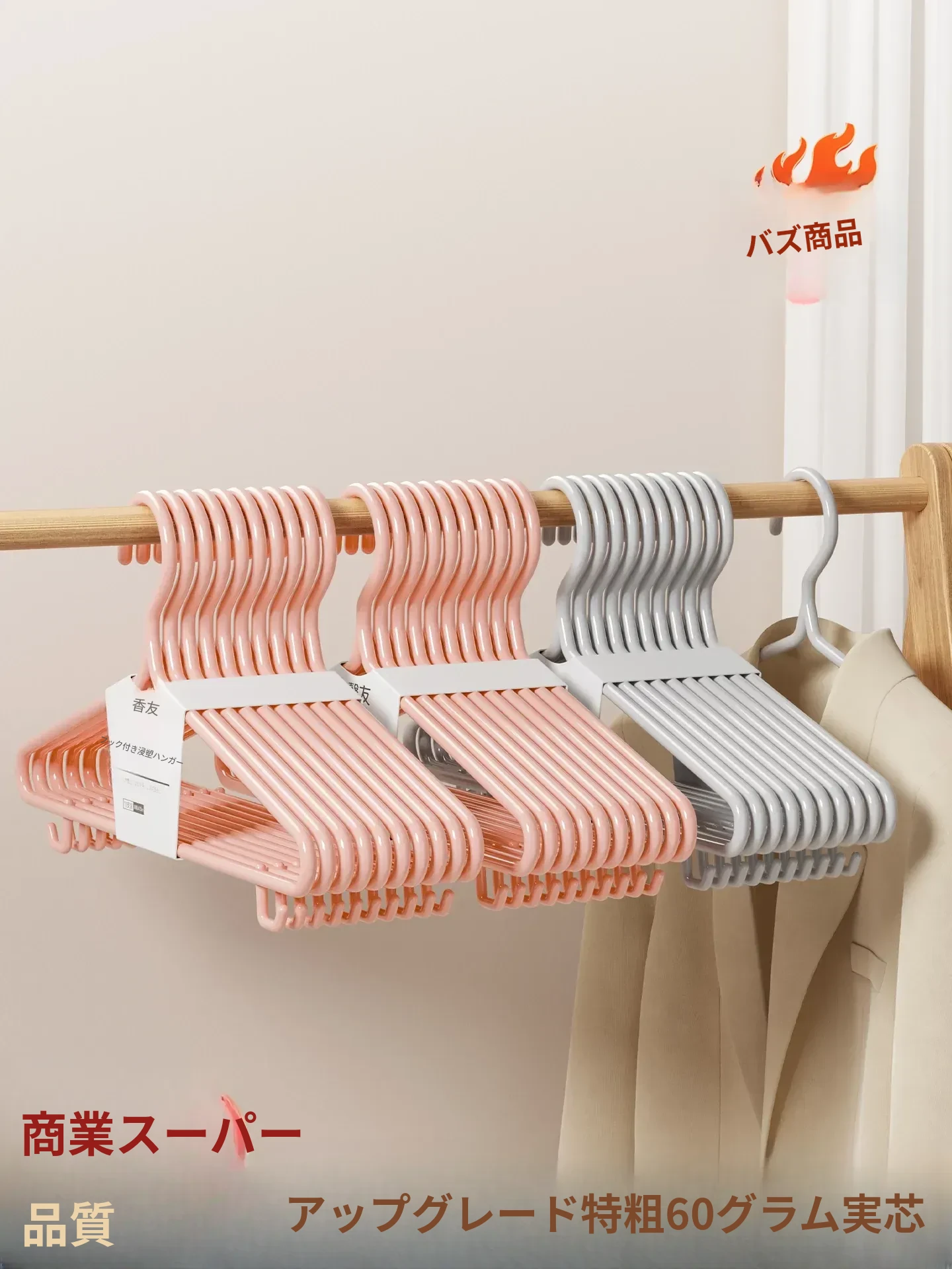 日本の学生向けハンガー 宿舎用 肩幅を気にせず無痕でしっかりサポート!滑り止め加工で衣類をしっかり固定、厚手デザインで大切な服も安心して掛けられる!