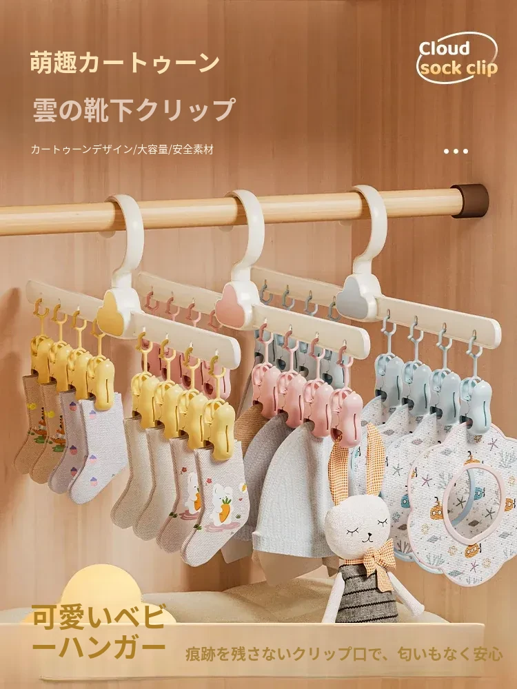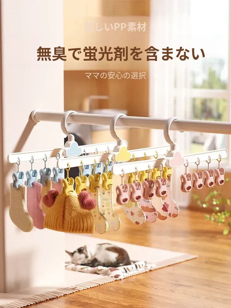 赤ちゃん用雲の形のソックス乾燥ラック|子供や赤ちゃんの靴下を快適に乾かす魔法のようなアイテム!多機能クリップ付きで、バルコニーでも簡単に使用可能!