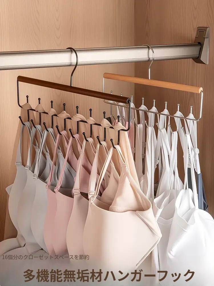 多機能インナー・タンクトップ収納ハンガー|家庭用&寮用|天然木製16個フック付き|波形デザインのクローゼットハンガーでおしゃれに衣類を整理!