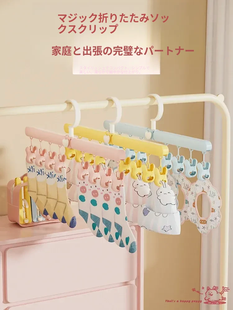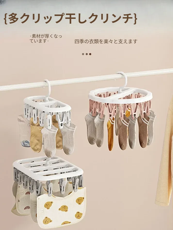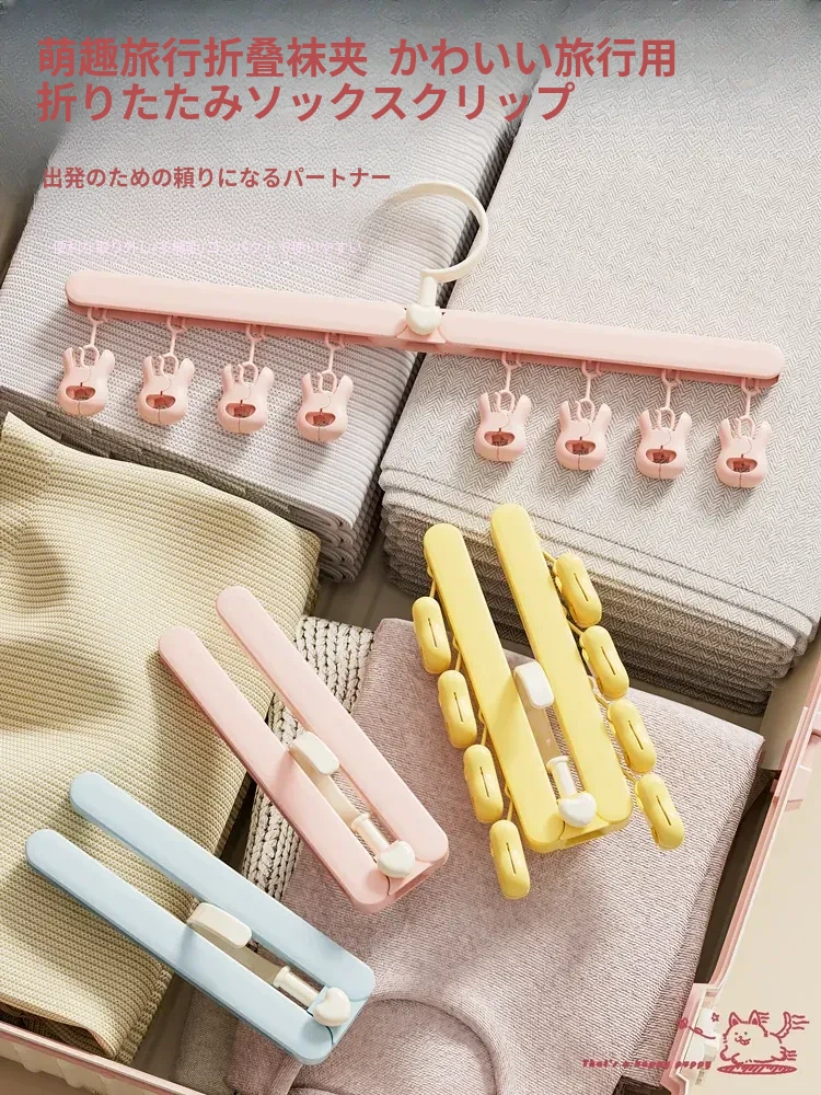 雲のように軽やか!折りたたみ式旅行ハンガー、便利な靴下・帽子・パンツクリップ付き。多機能で子供用にも最適な折りたたみ乾燥クリップで、旅先でも簡単に衣類を干せます!
