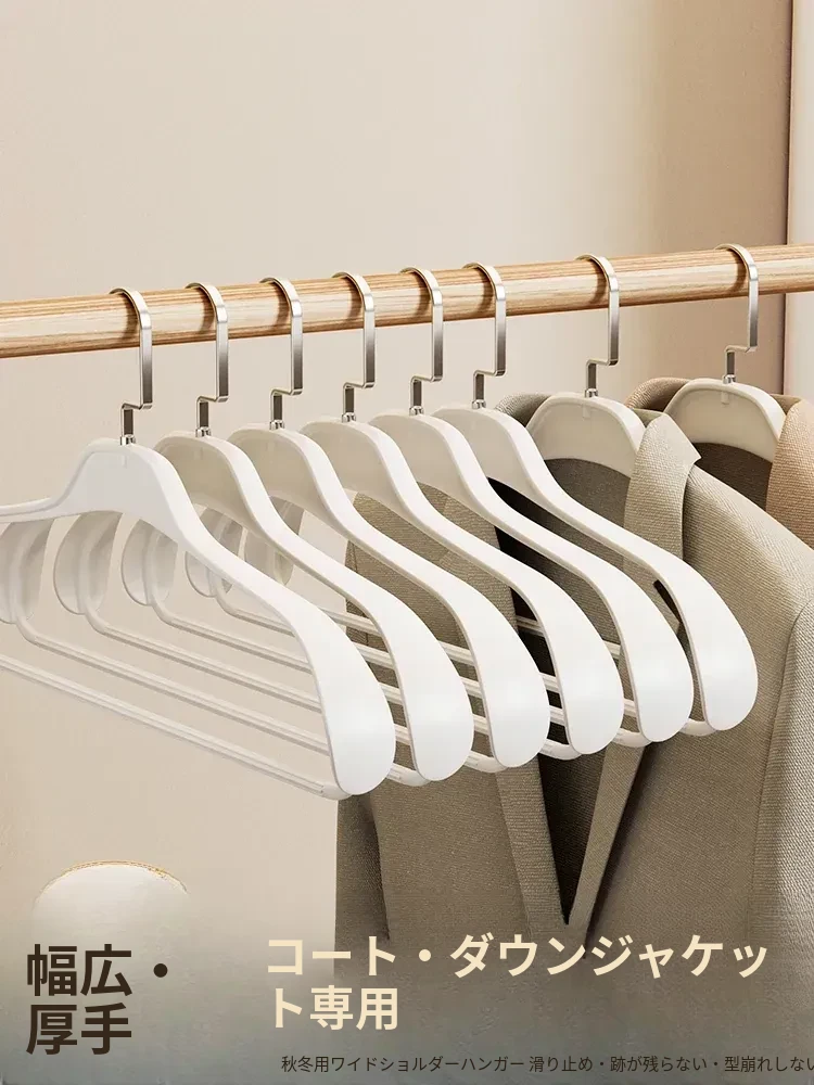 無痕デザインの家用衣類ハンガー!秋冬に最適な広肩専用スーツ・カシミヤコートハンガーで、肩のラインをキープしつつ大切な衣類をしっかり支えます。収納もスッキリ!