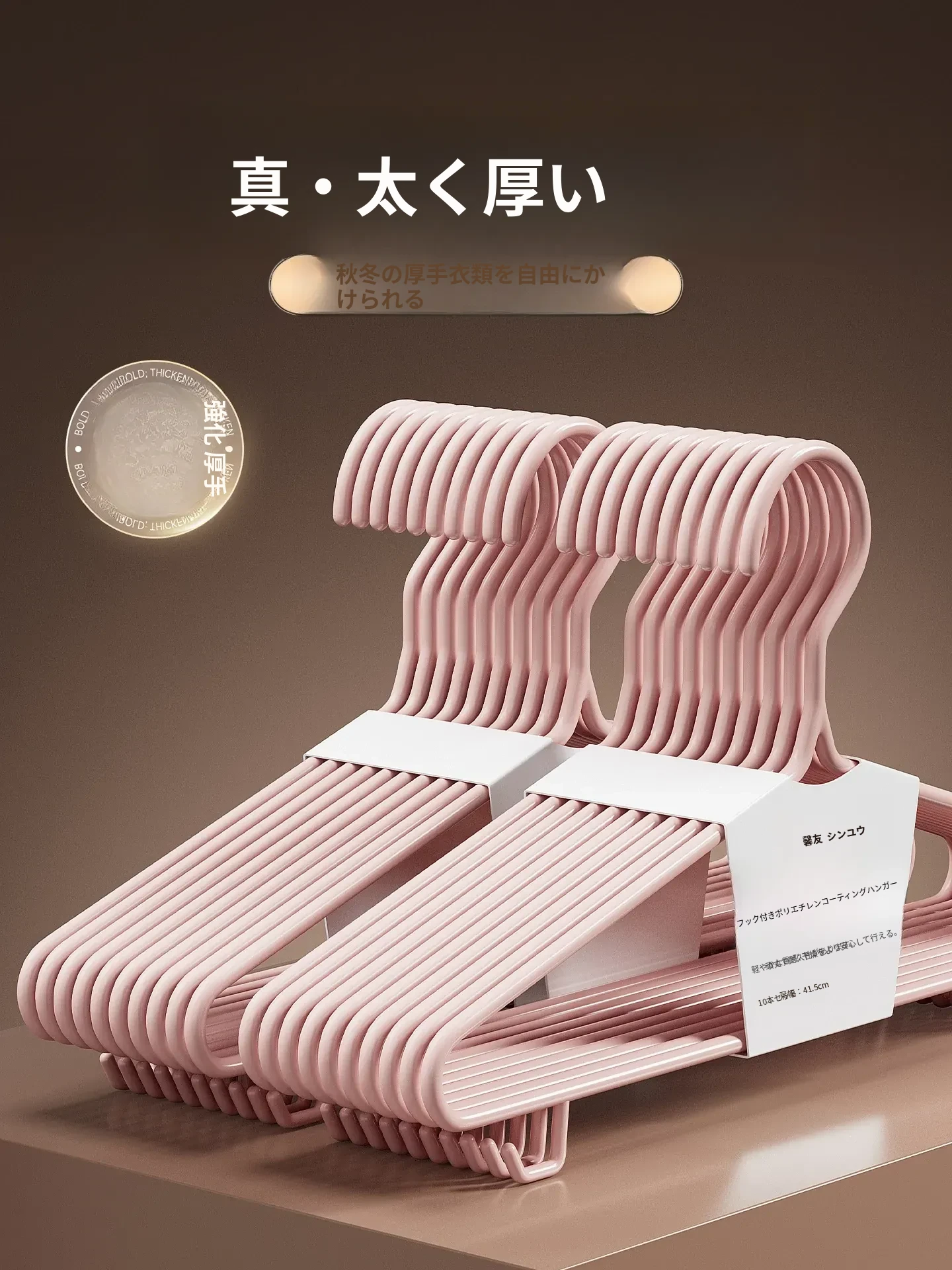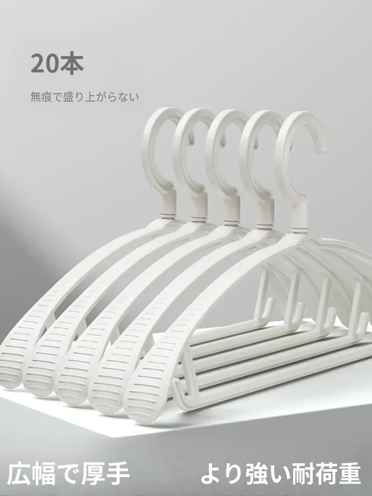 幅広肩幅で滑らない、厚手・太めの無痕プラスチックハンガー!衣類店専用、肩のラインを守り、衣服の型崩れを防ぐ最適なアイテム。大切な衣類をしっかり支えます!