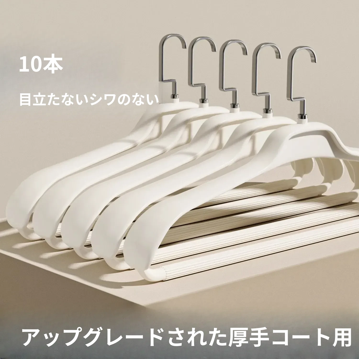 肩幅広いノンストレスハンガー - 家庭用コート・衣類用ハンガー、肩の角を守り、滑り止め機能付きでシワになりにくい!大切な衣類を優しくサポートするアイテムです。