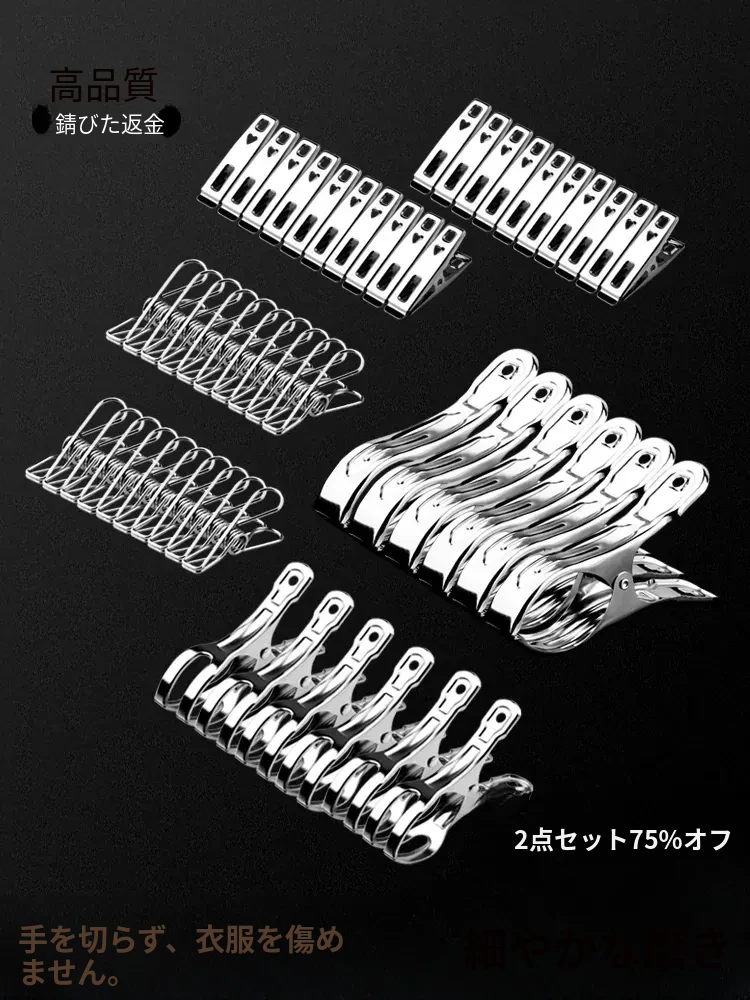 風に強い大サイズのステンレスクリップ!衣類や布団をしっかり固定。家庭用として最適、耐久性抜群で長持ち!お洗濯やアウトドアに最適な便利アイテムです。