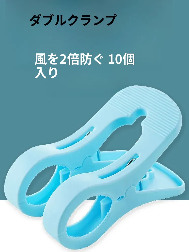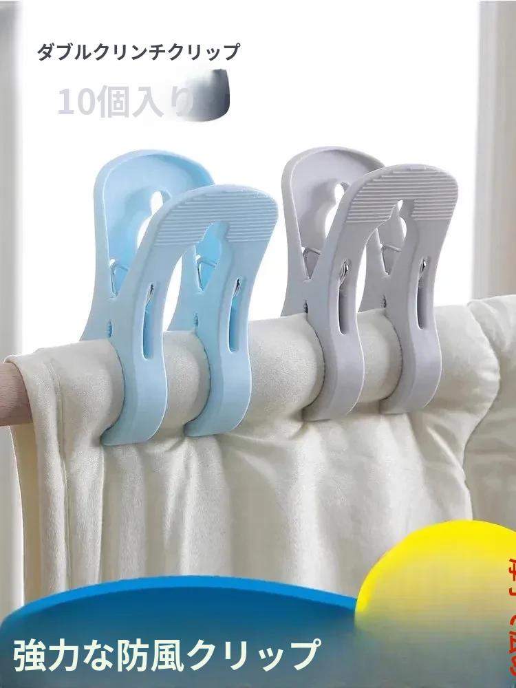 大容量10個入り!防風タイプの強力プラスチック布団クリップ - 家庭用・洗濯物干しに最適な大きめクリップ!しっかり固定して、風が強い日でも安心!