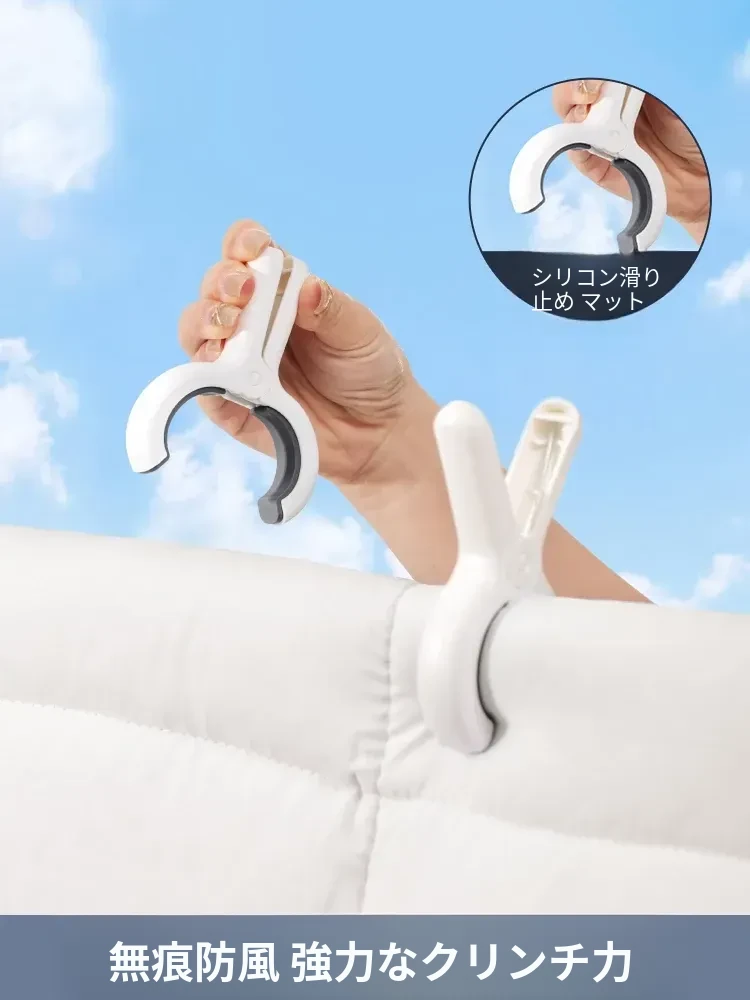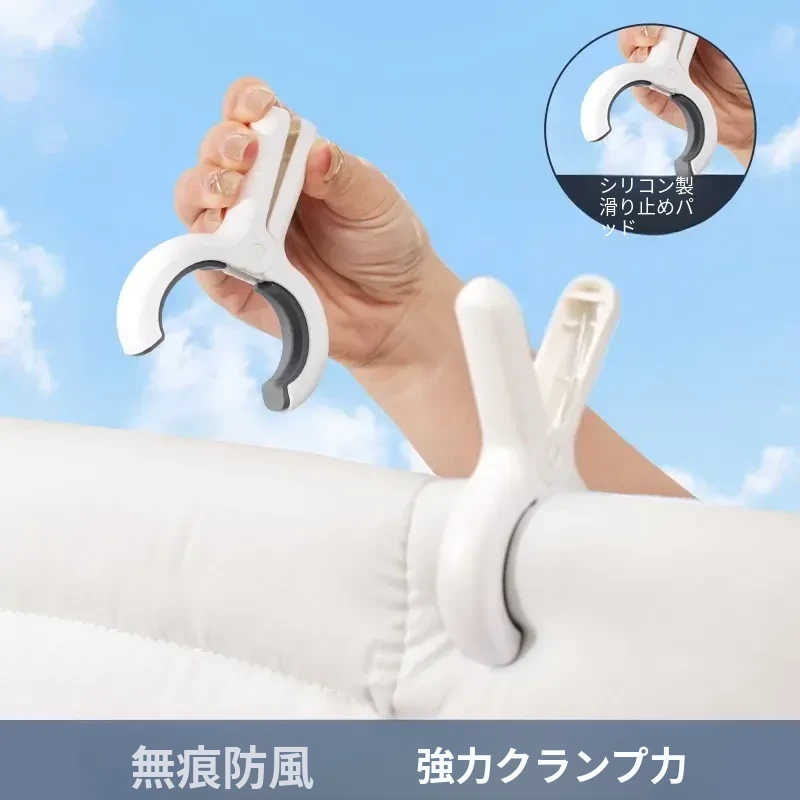 強力な防風クリップ付き大サイズ布団干しクリップ - 家庭用プラスチック製、衣服や布団をしっかり固定!風の強い日でも安心して使用できる、便利な干し具です。