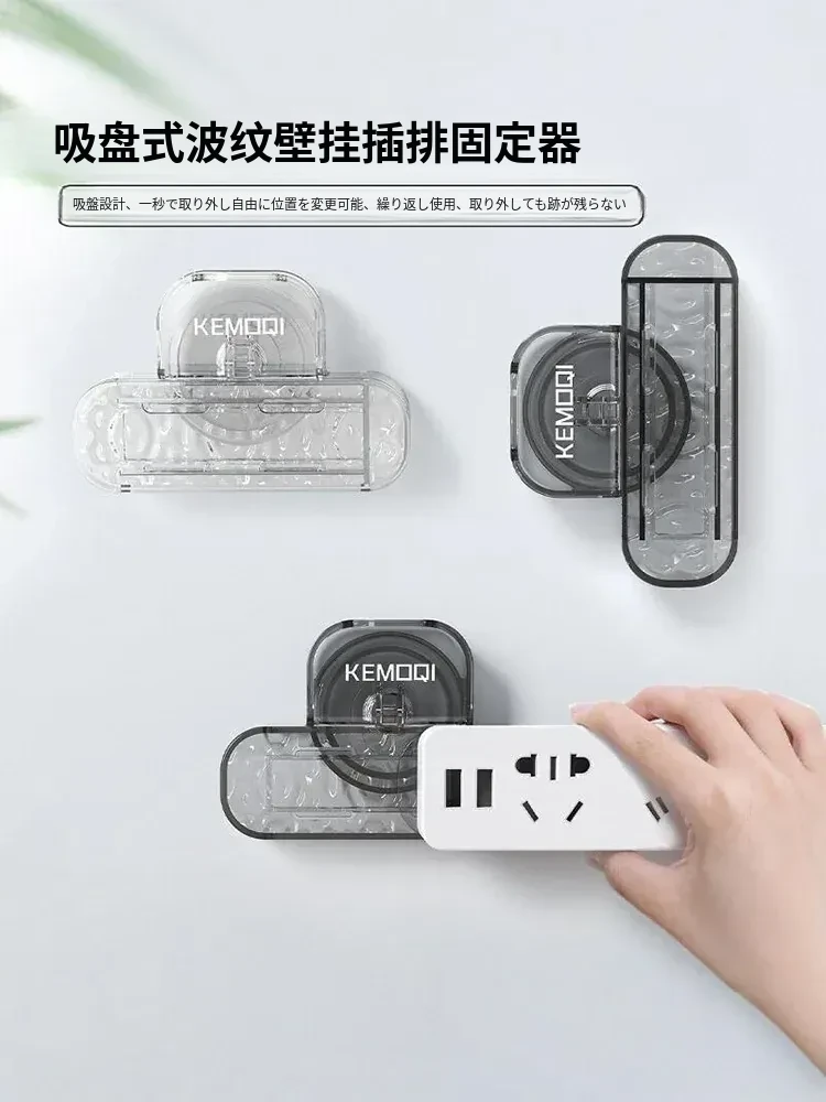 吸盤式のコンセント固定器 - 水波模様の透明デザイン、壁に穴を開けずに設置可能!おしゃれな収納ラックで、スッキリとした空間を実現します。