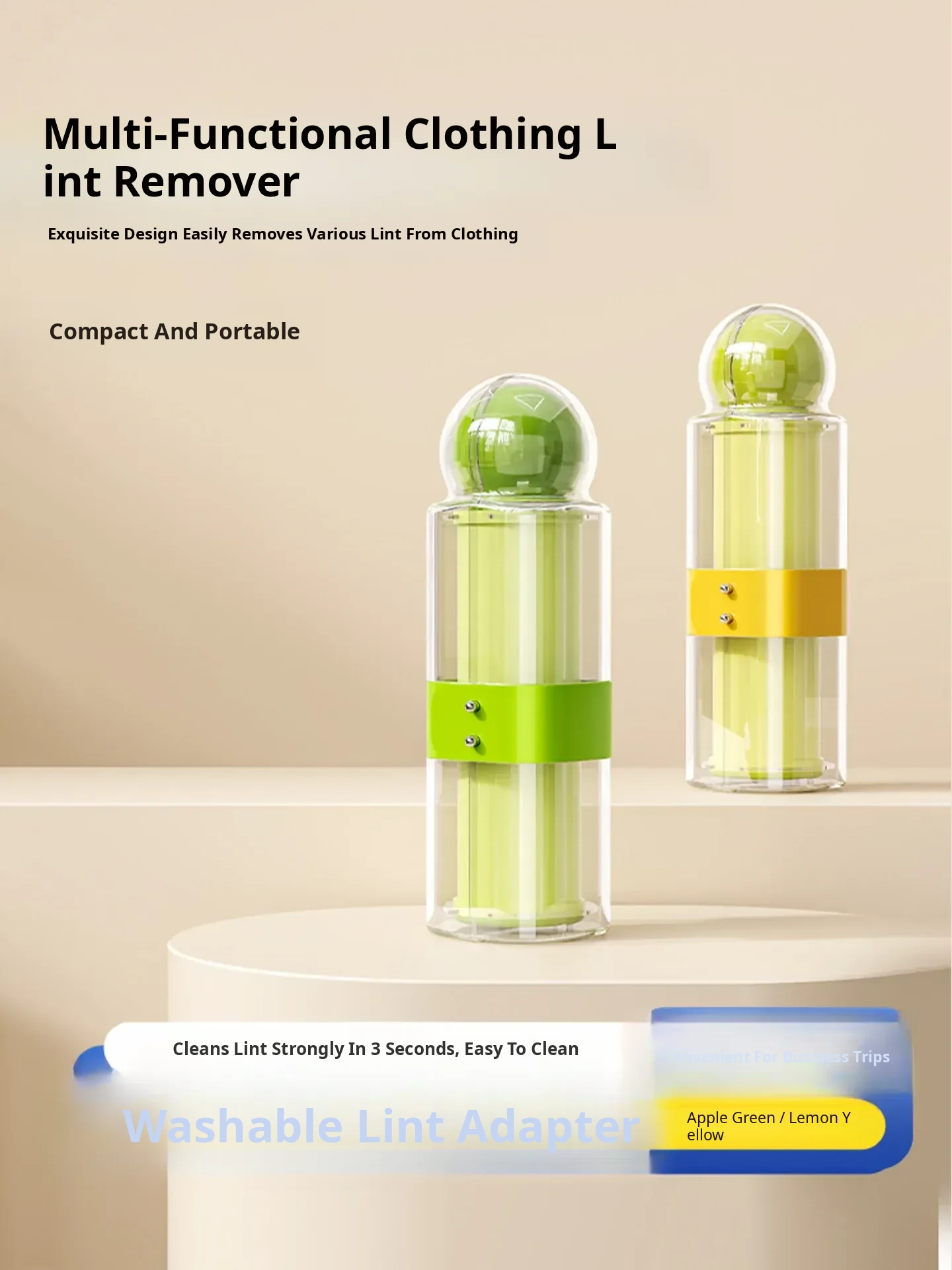 Portable Washable Lint Roller - Travel-Friendly Hair Remover for Clothes, Gentle on Fabrics, Perfect for Removing Pet Hair and Pilling, Ideal for On-the-Go Cleanliness