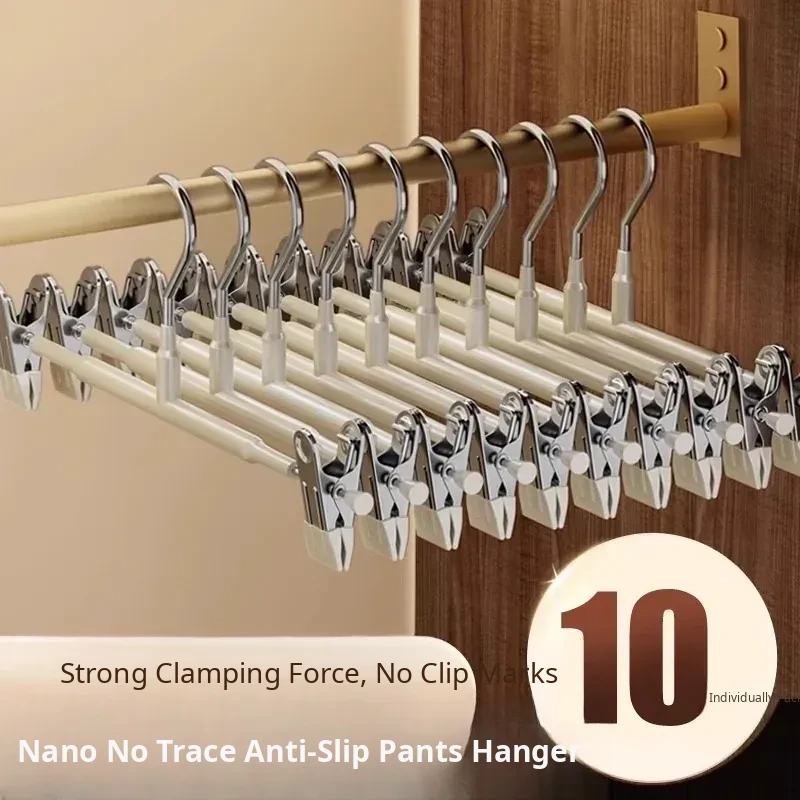 Premium Non-Slip Pants Hangers with Clips - Stainless Steel Clothes Hangers for Home Use, Strong Grip, No Trace Design, Perfect for Drying Skirts and Pants
