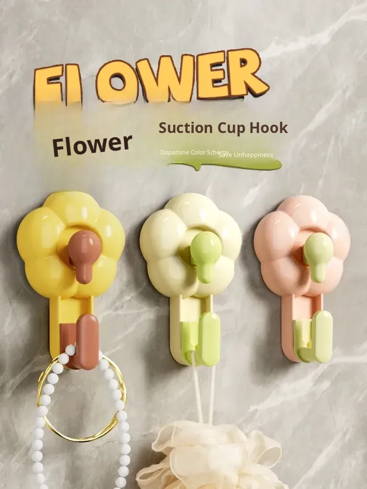Strong Floral Suction Cup Hooks - Heavy-Duty Vacuum Adhesive, No Drilling Required, Cute and Creative Bathroom, Kitchen, and Toilet Wall Hooks for Easy Organization and Stylish Decor