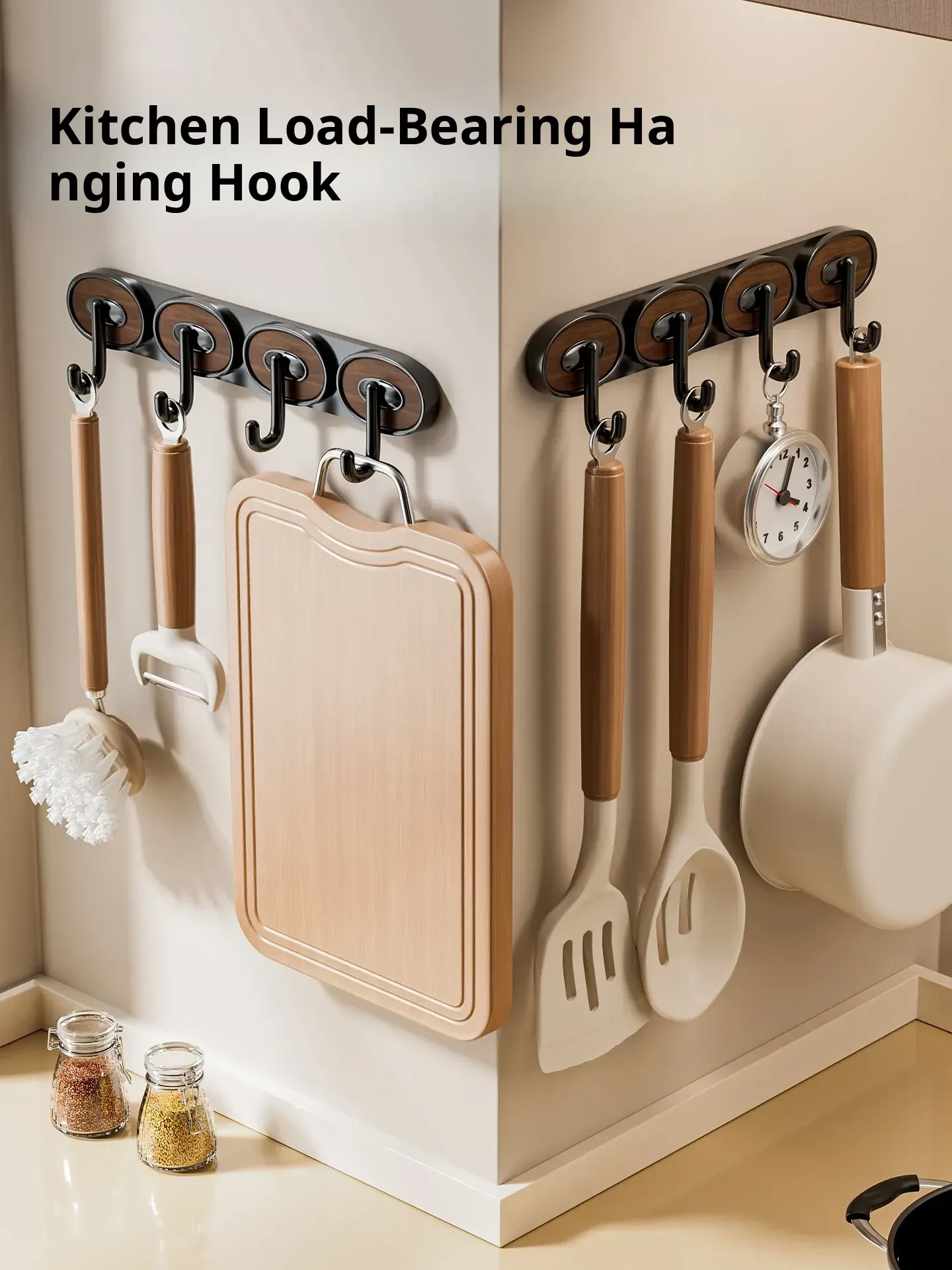 No-Drill Kitchen Hooks - Powerful, Multi-Functional Wall Hooks for Spoons and Spatulas - Easy to Install and Strong Weight-Bearing Kitchen Organizer