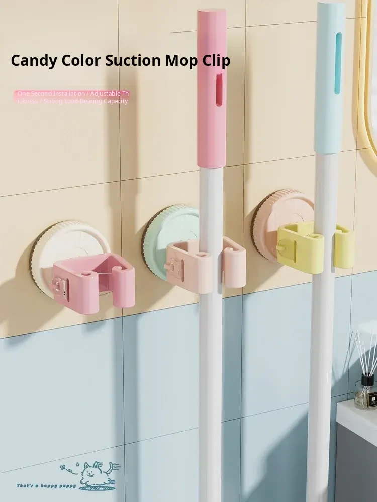Wall-Mounted Mop Holder with Suction Cup - No Drill Required, Perfect for Bathroom Storage of Mops and Brooms, Keep Your Space Organized and Tidy!