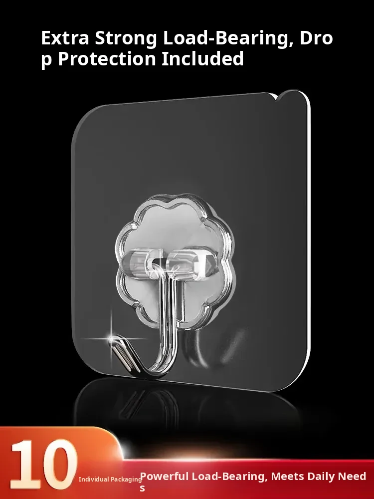 Strong Adhesive No-Drill Wall Hooks - Transparent, Waterproof, and Creative Clothes Hanging Solution for Kitchen and Home - Damage-Free and Easy to Install!