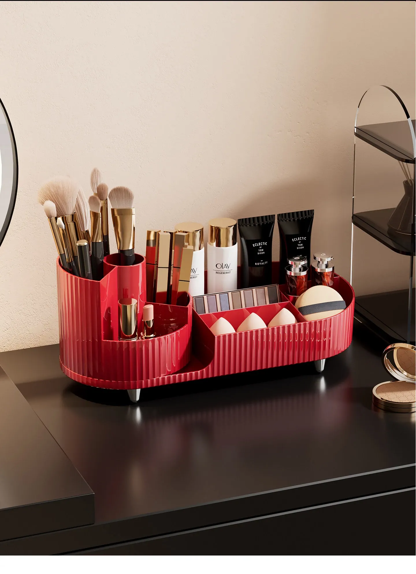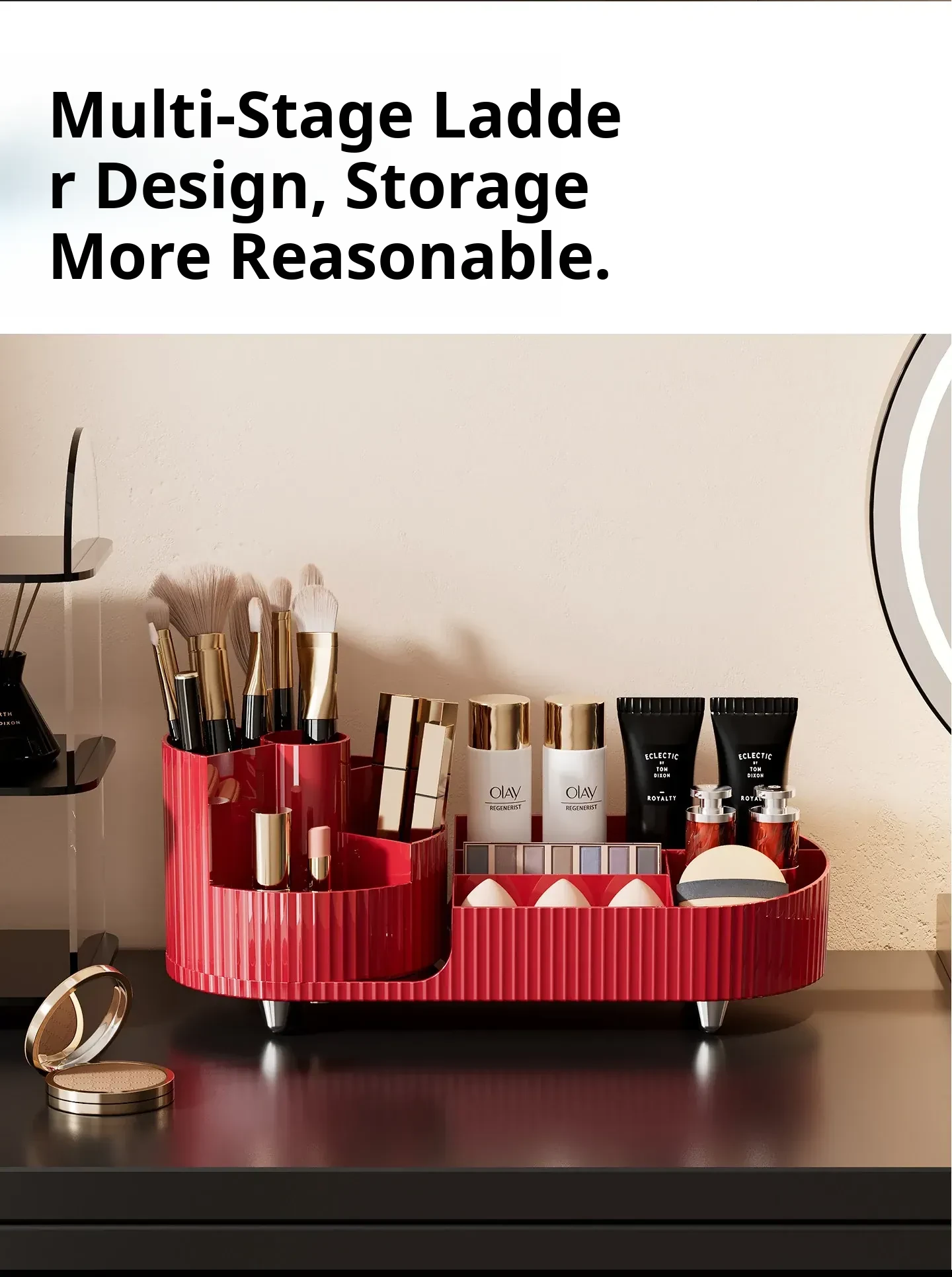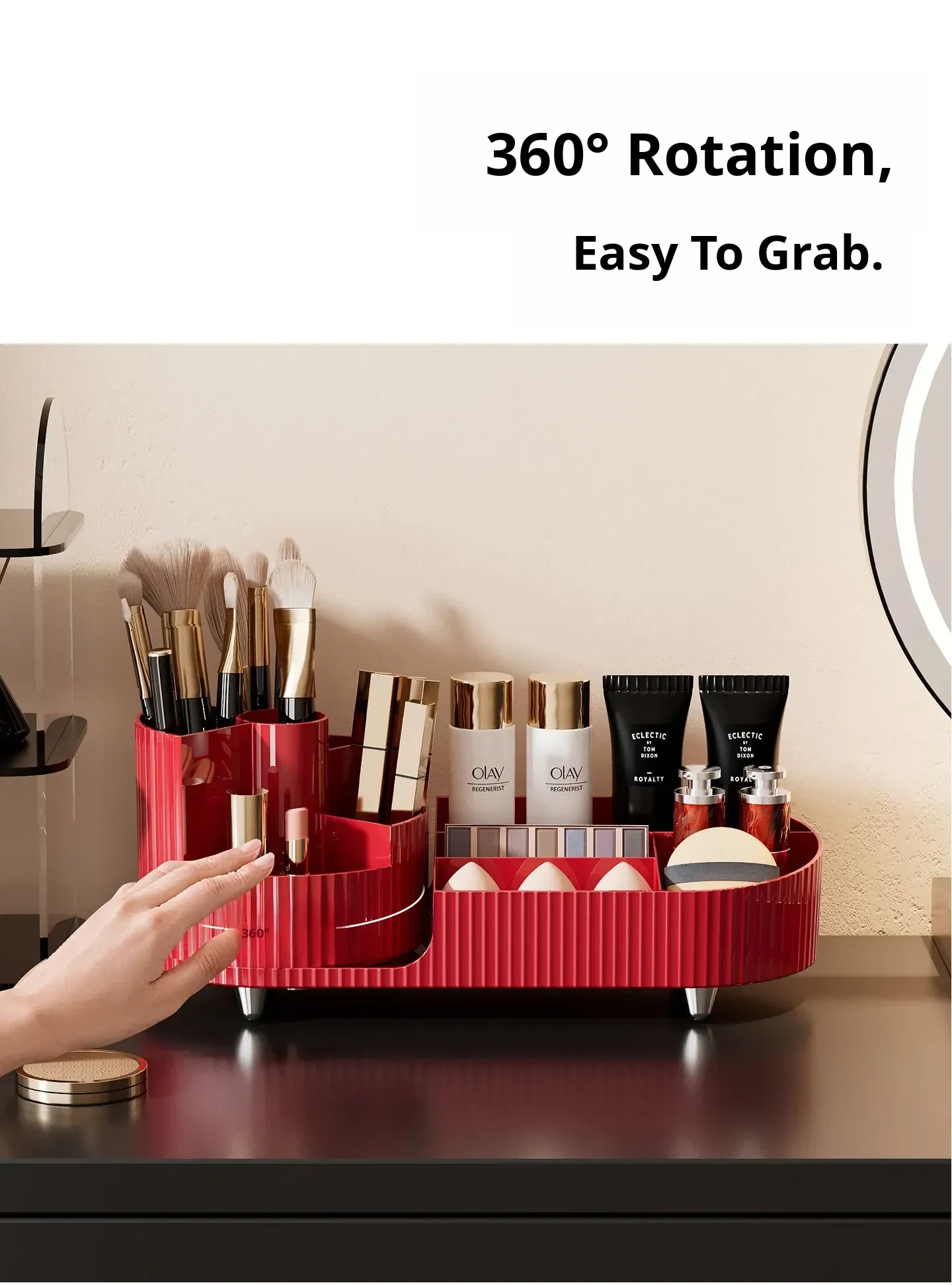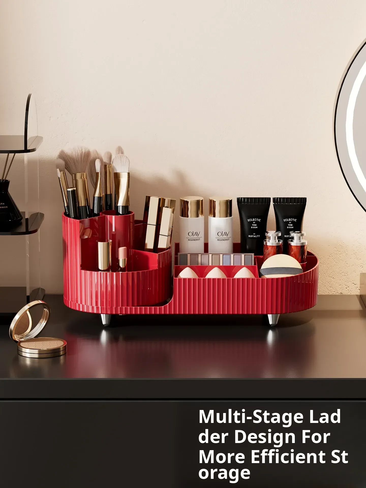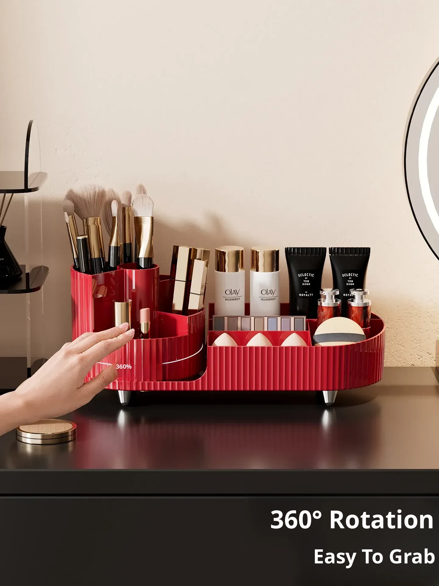 25th Anniversary Premium Makeup Organizer - Large Capacity Rotating Vanity Box with Elegant INS Style for Your Dressing Table