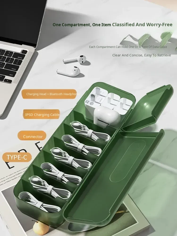 Desktop Cable Organizer and Charger Hub - Stylish Wire Management Box with Lid for Tangle-Free Data Cable Storage, Perfect for Home and Office Use
