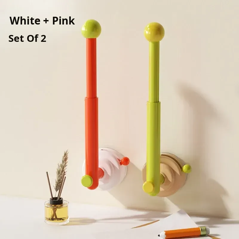 (White + Pink/2 Pack) Dopamine Suction Cup Hook [Retractable and Rotatable]