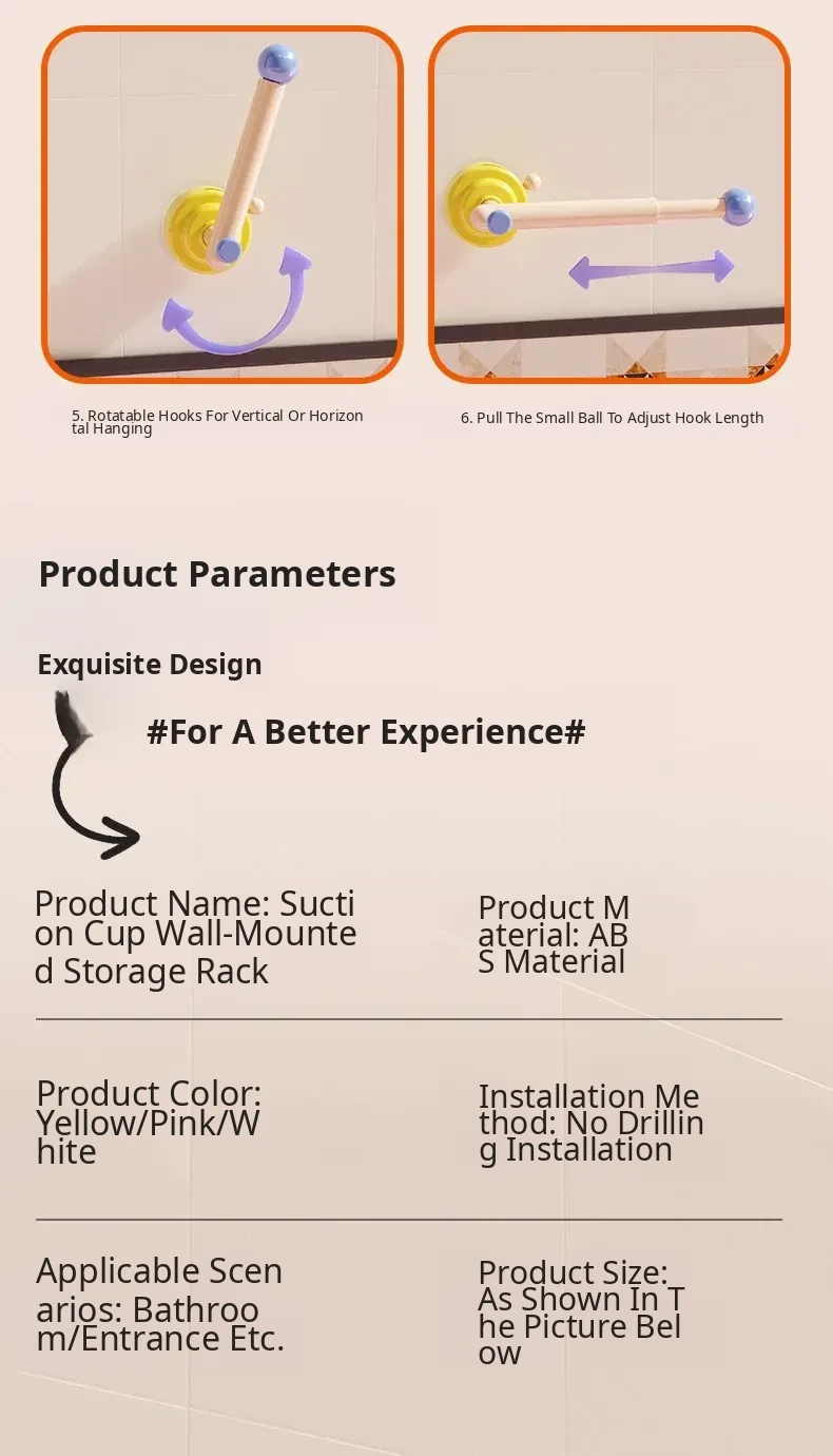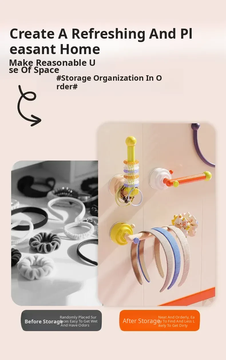 Dopamine Suction Cup Hooks - Wall-Mounted Hair Tie, Headband, Hair Accessories Organizer - No Drilling Required, Perfect Storage Solution for Your Hair Clips and Elastics!