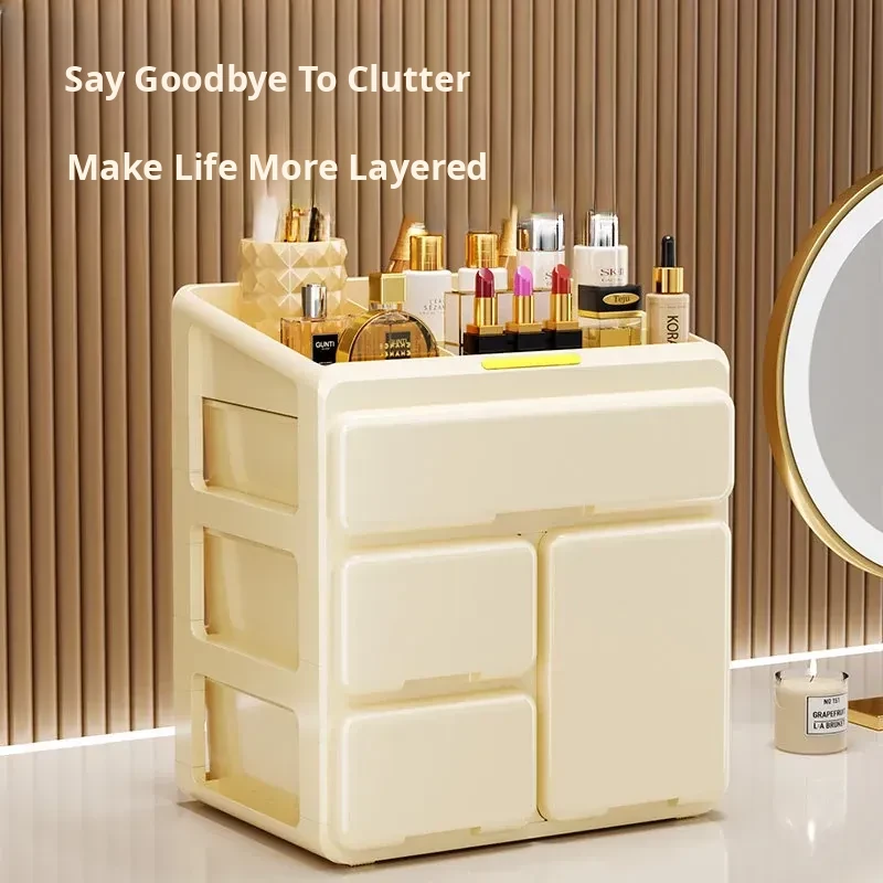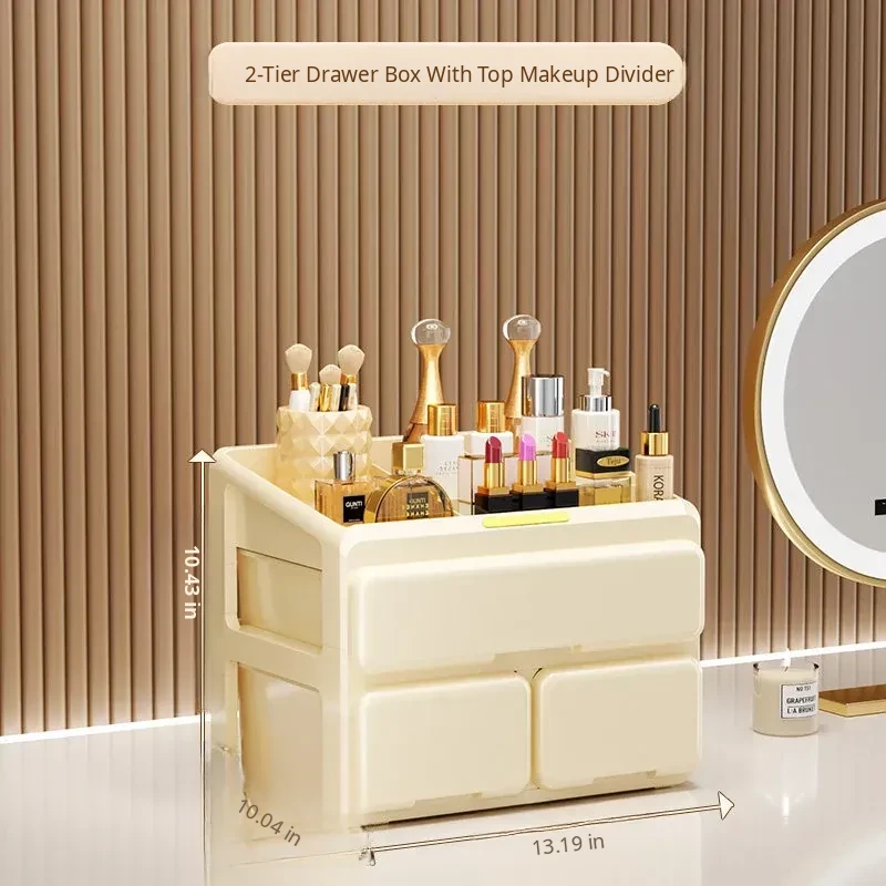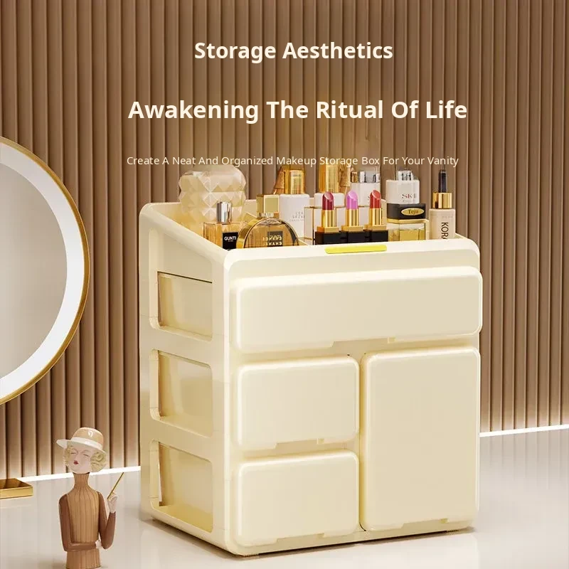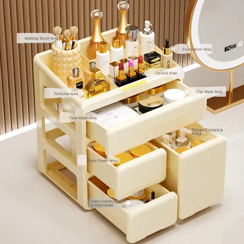 Elegant Large Capacity Makeup Organizer with Drawers - Stylish Desktop Storage Solution for Skincare and Cosmetics at Home