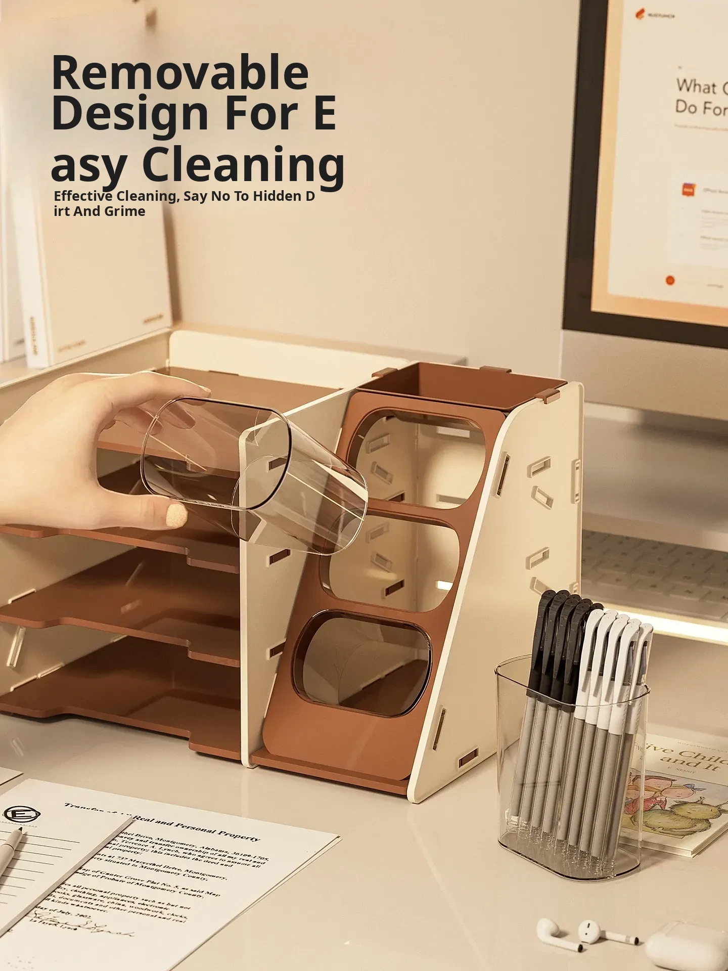 Japanese Desktop Organizer - Stylish Slant-In Pen Holder with Large Capacity for Stationery Storage, Perfect for Your Workspace and Desk Organization