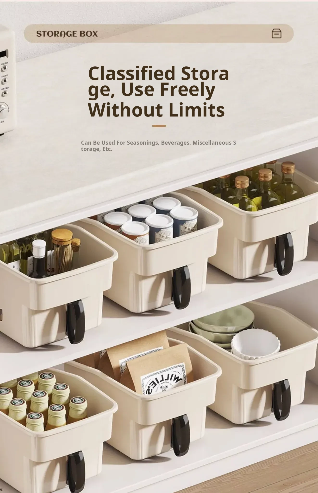 Kitchen Storage Box with Handle - Spice Rack and Lid Organizer for Pots and Cookware - Perfect Cabinet Storage Solution for a Clutter-Free Kitchen!