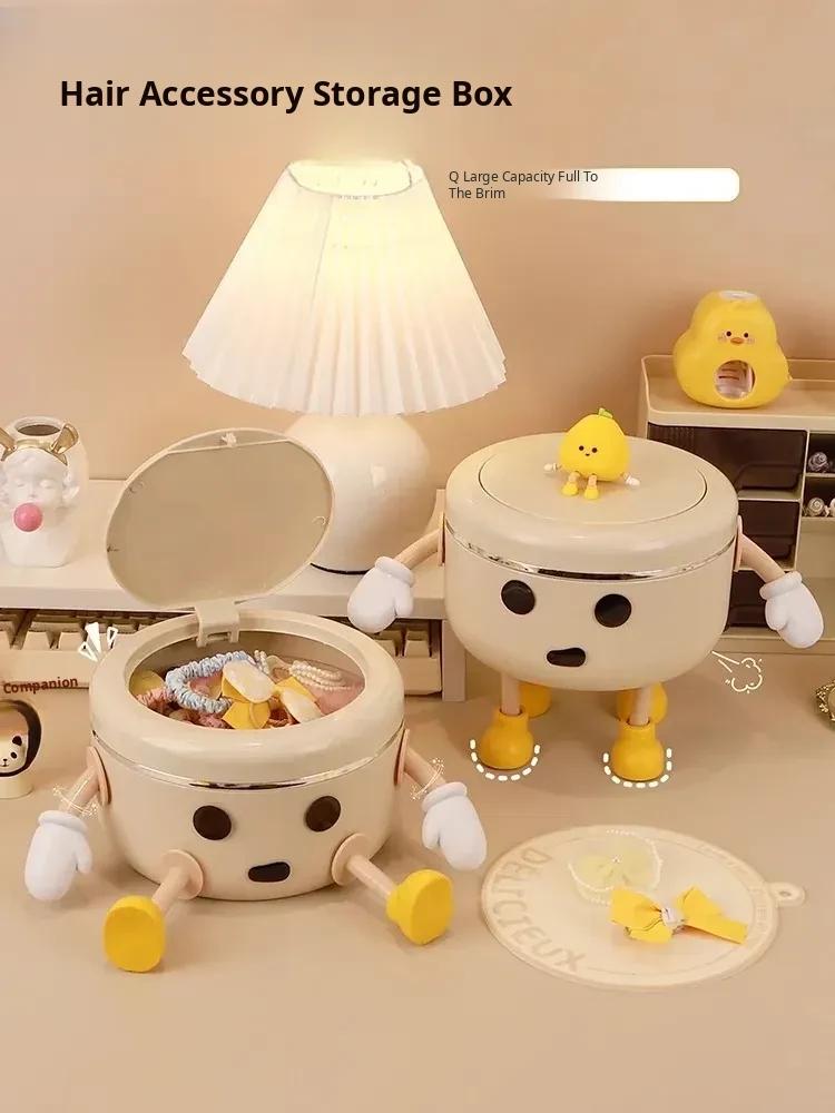 Large Capacity Hair Accessory Storage Box with Lid - Cute Cartoon Design for Kids, Perfect for Organizing Hairpins, Hair Ties, and Jewelry! Ideal Gift for Girls!