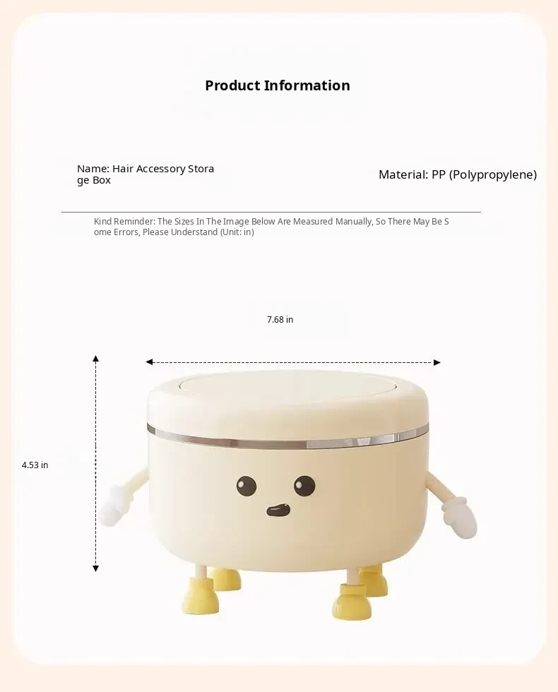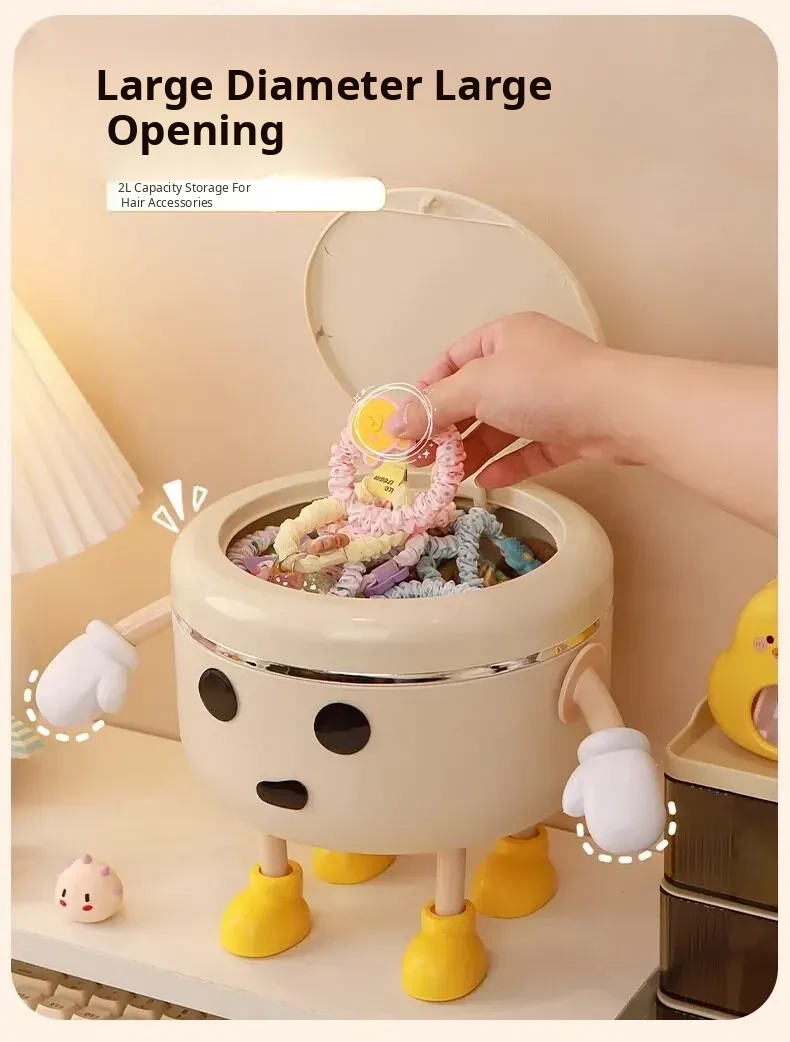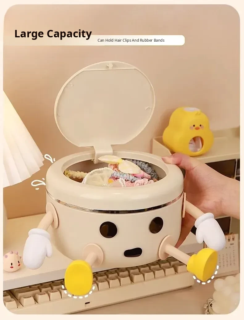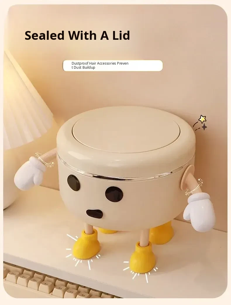Cream White - Desktop Hair Accessory Storage Box [Standing Style] 2L + 2 Hands 4 Feet + Eyes