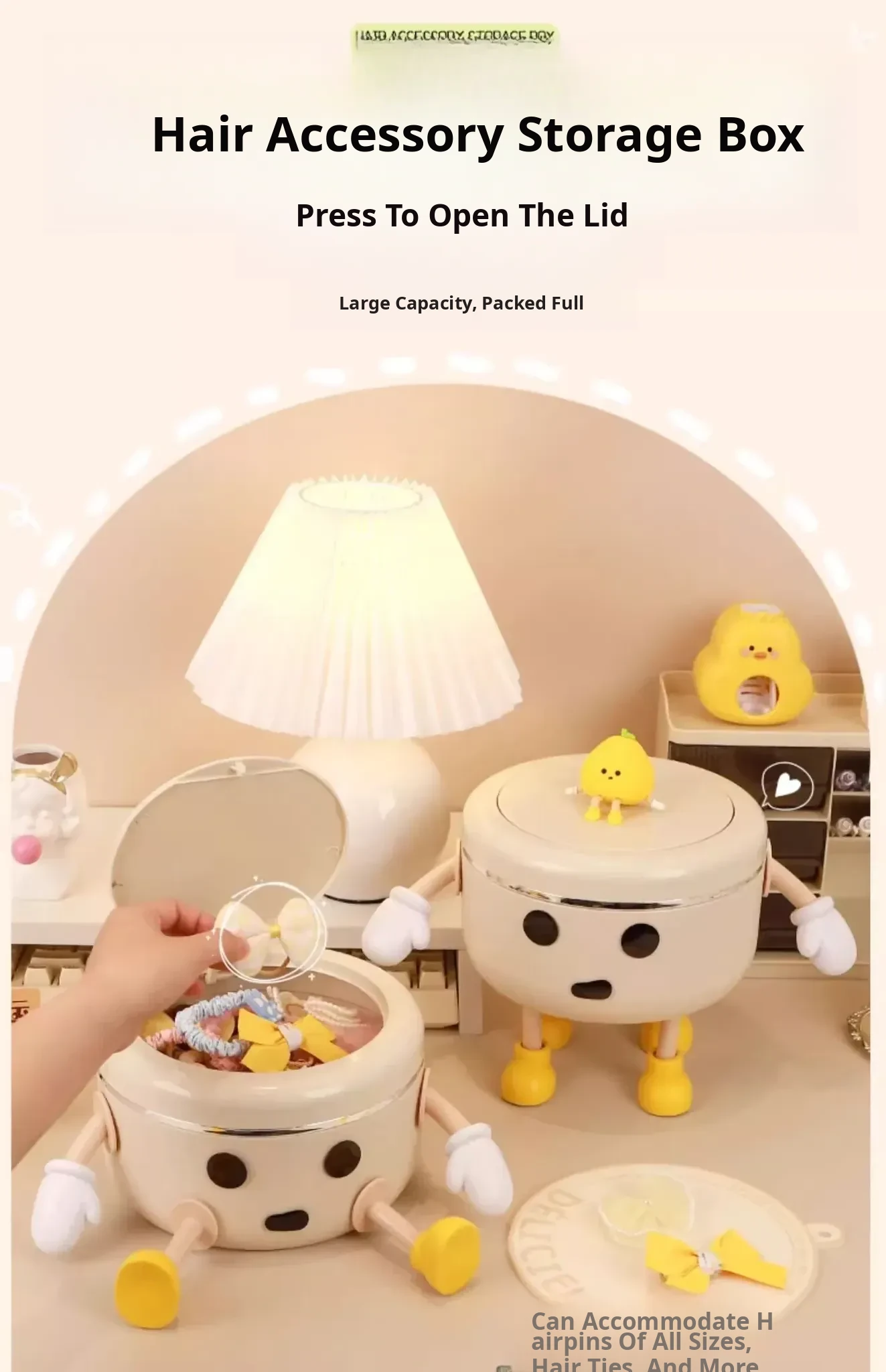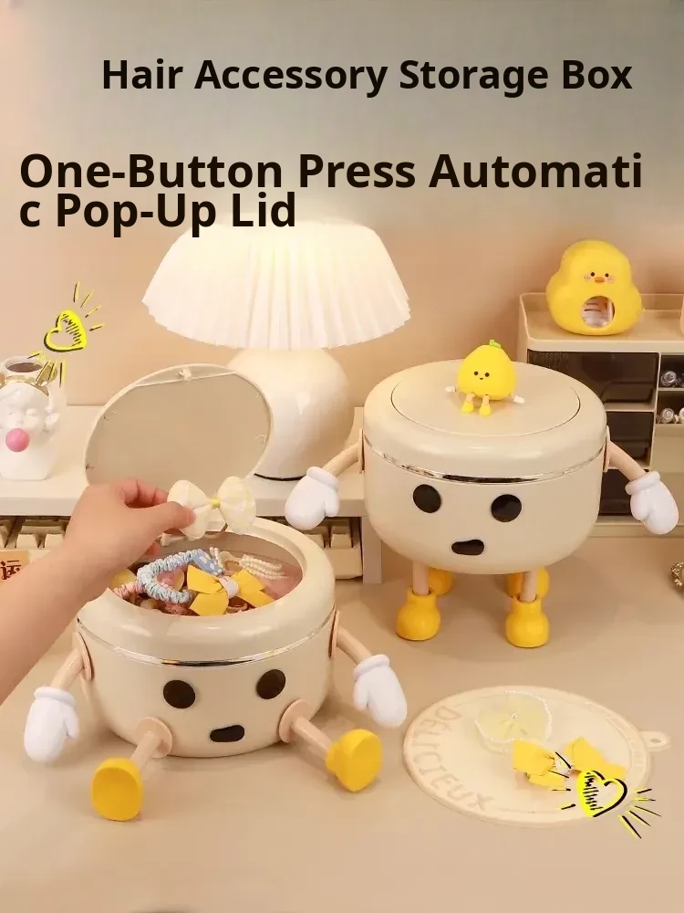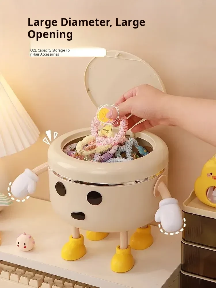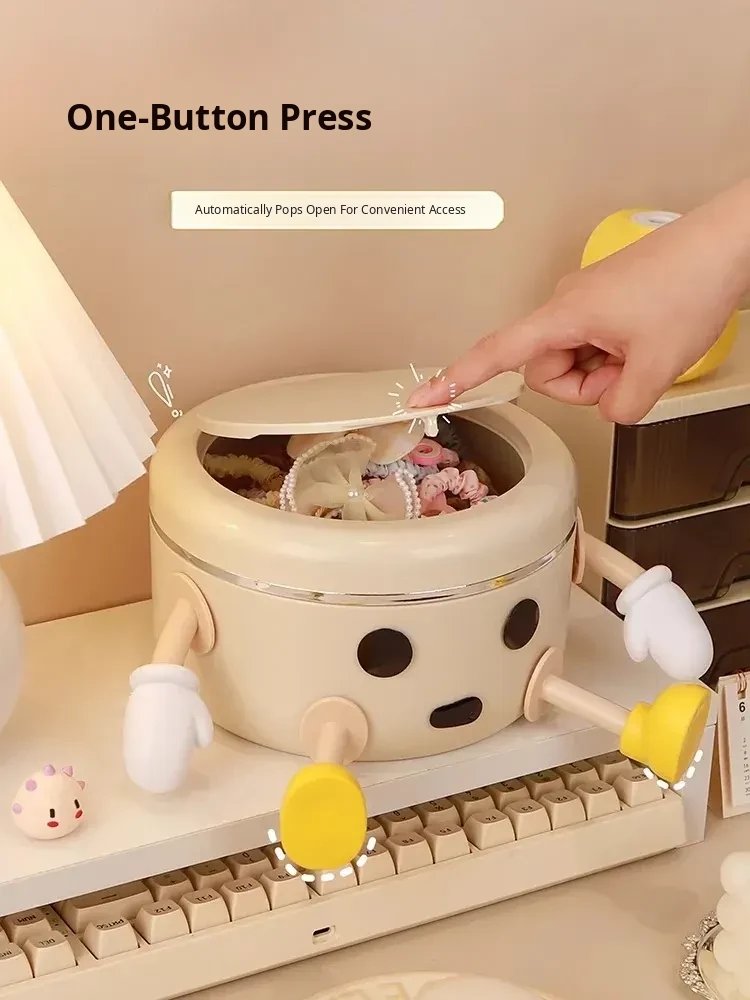 Cream White - Desktop Hair Accessory Storage Box [Standing Style] 2L + 2 Hands 4 Feet + Eyes