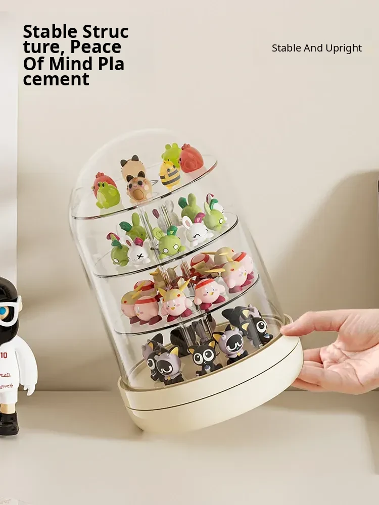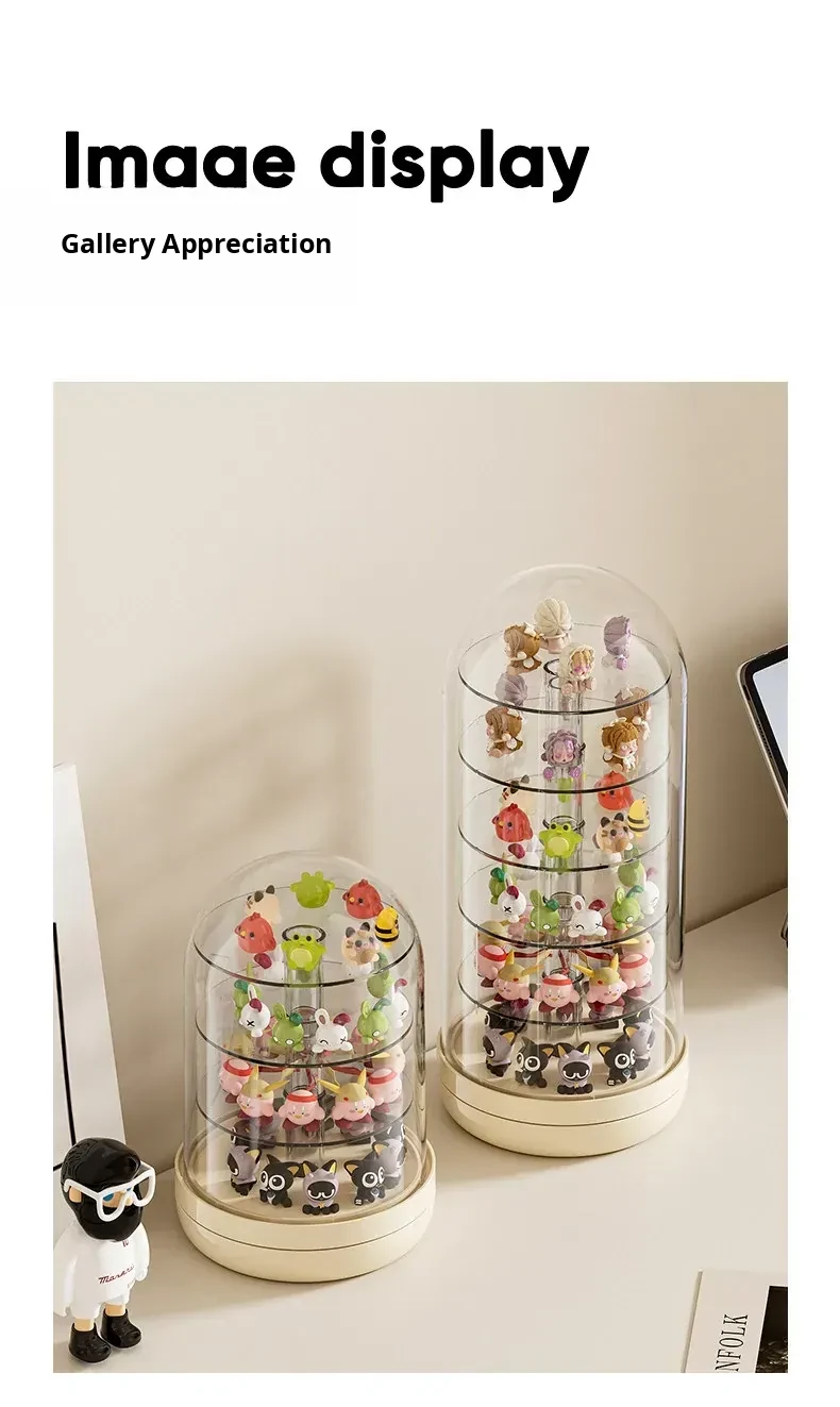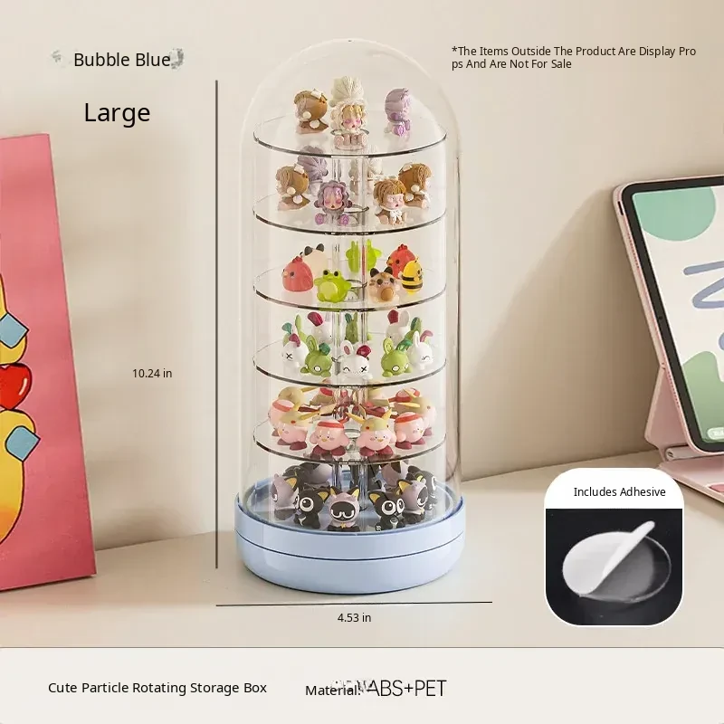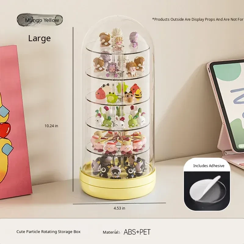Maitian Cute Character Display Box - Transparent Dustproof Rotating Desktop Organizer, Mini Figurine Blind Box Storage Solution for Collectibles and Decor