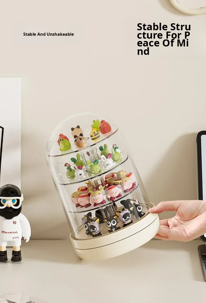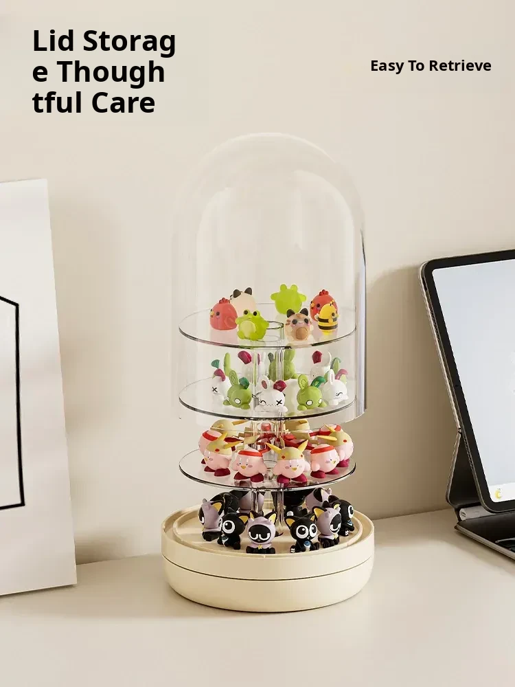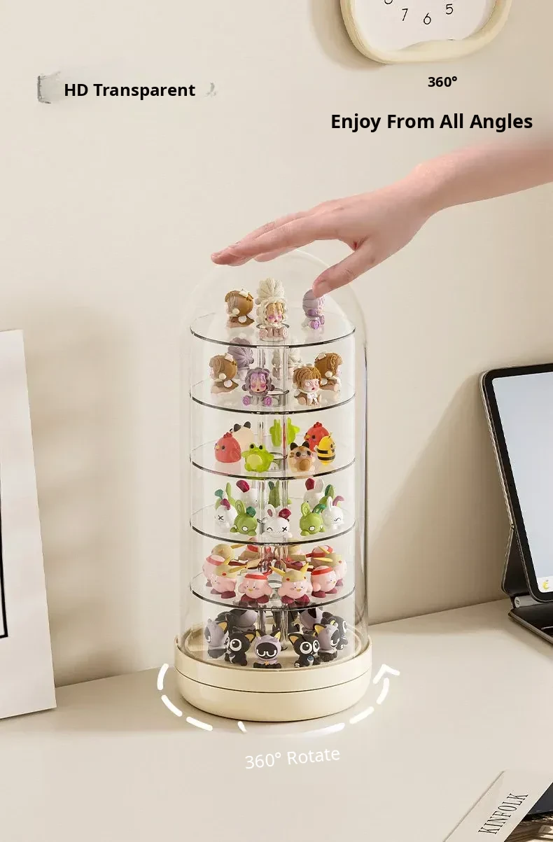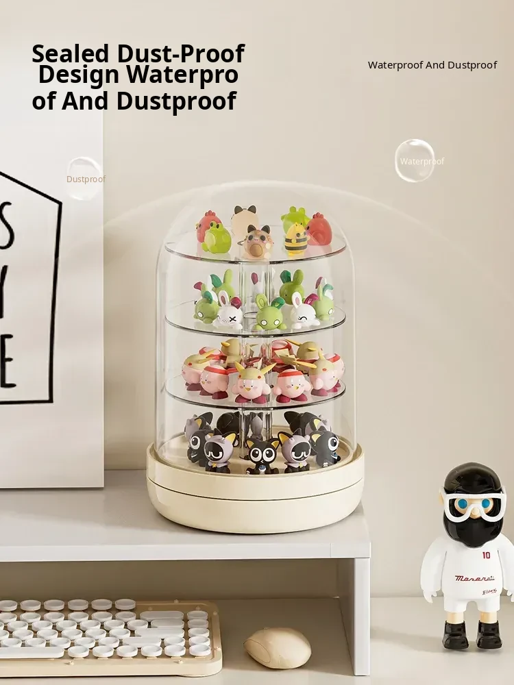 Maitian Cute Character Display Box - Transparent Dustproof Rotating Desktop Organizer, Mini Figurine Blind Box Storage Solution for Collectibles and Decor