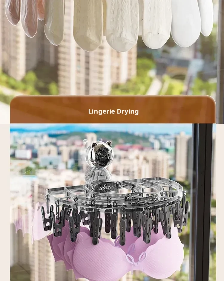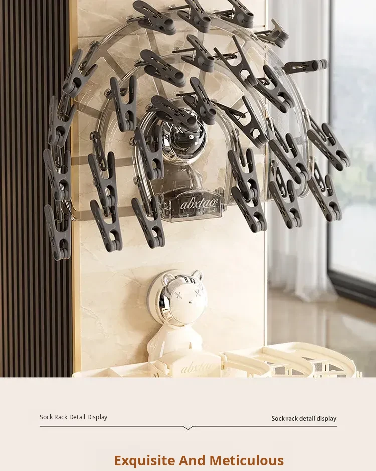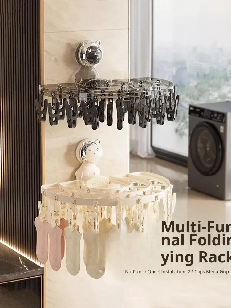 Multi-Clip Suction Cup Sock Drying Rack - Versatile, Foldable Clothes Hanger for Indoor Use, No Drilling Required - Perfect for Underwear and Panties, Ideal for Balconies and Home Use!