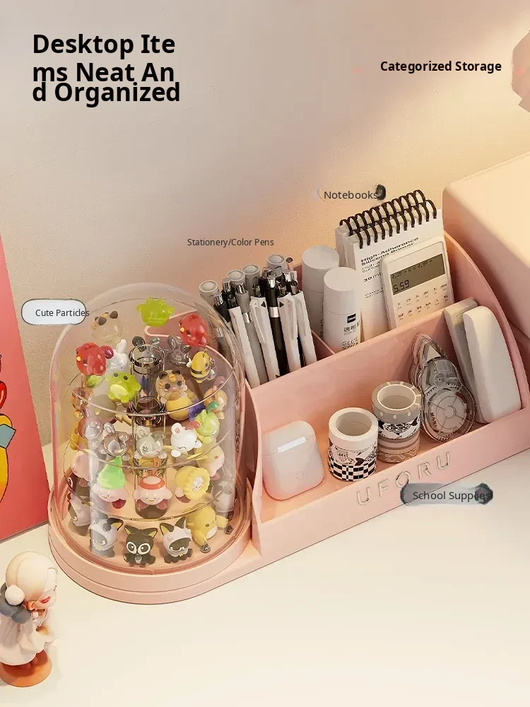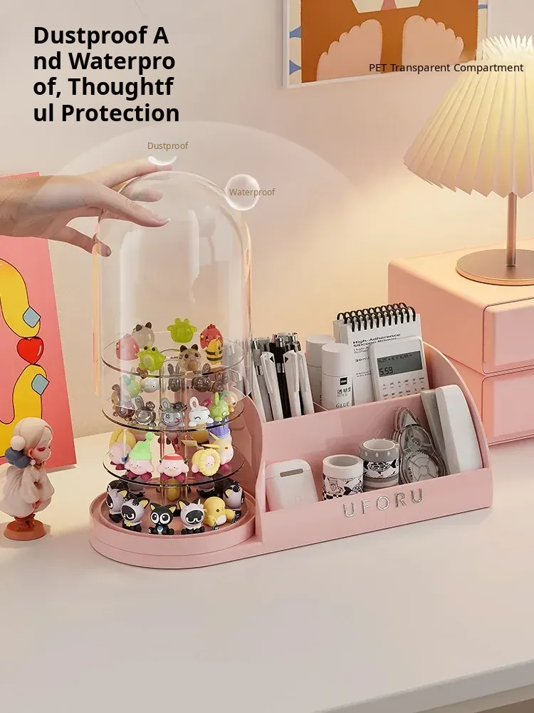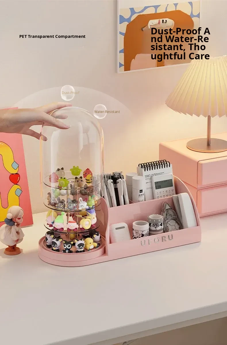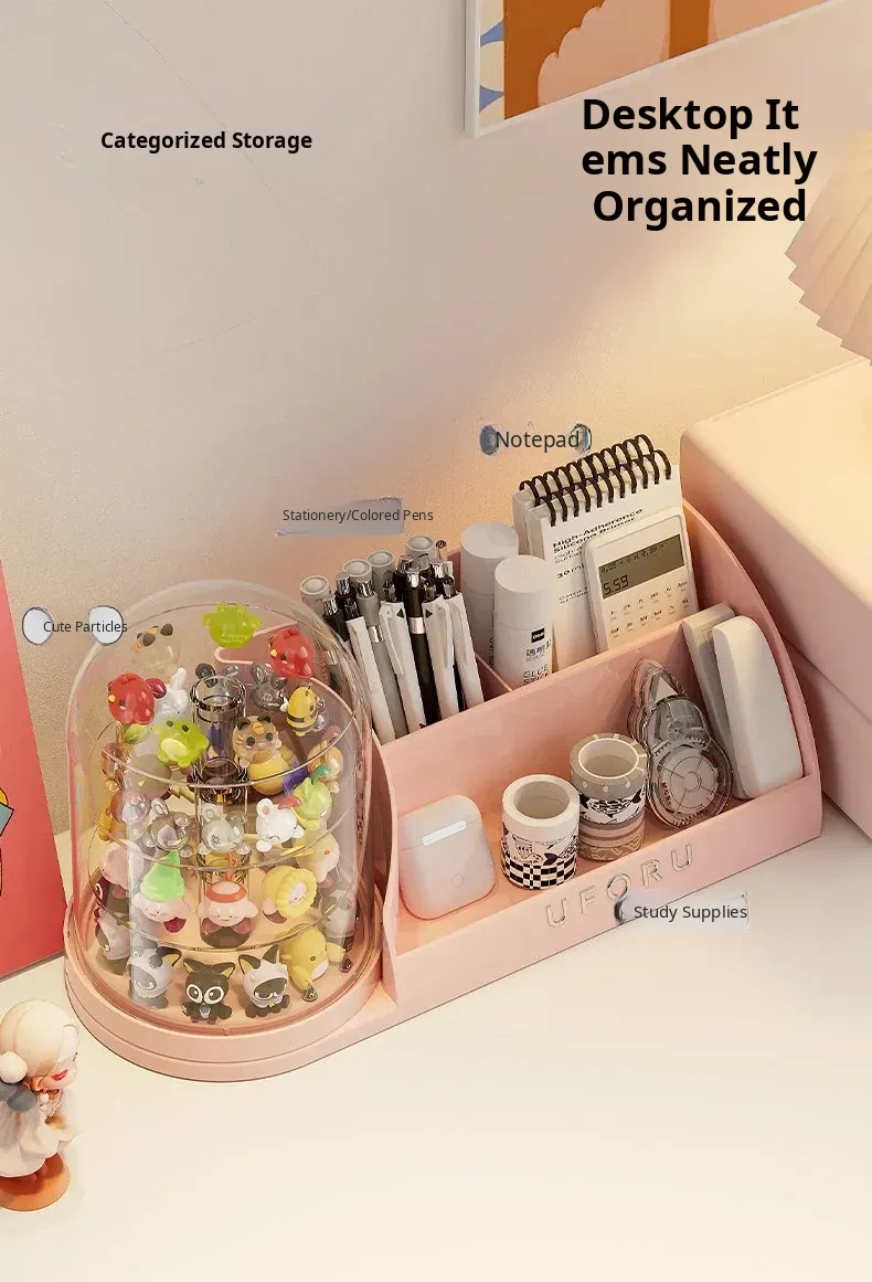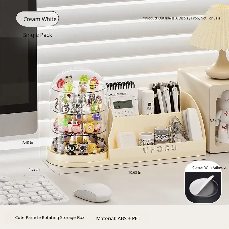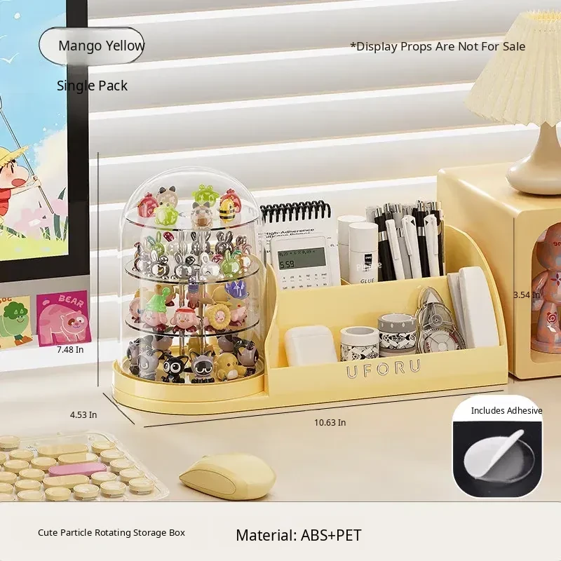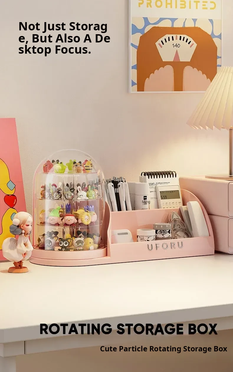 Multifunctional Cute Rotating Desktop Organizer Box - Dustproof Storage Container with Lid for Students, Dorms, and Offices