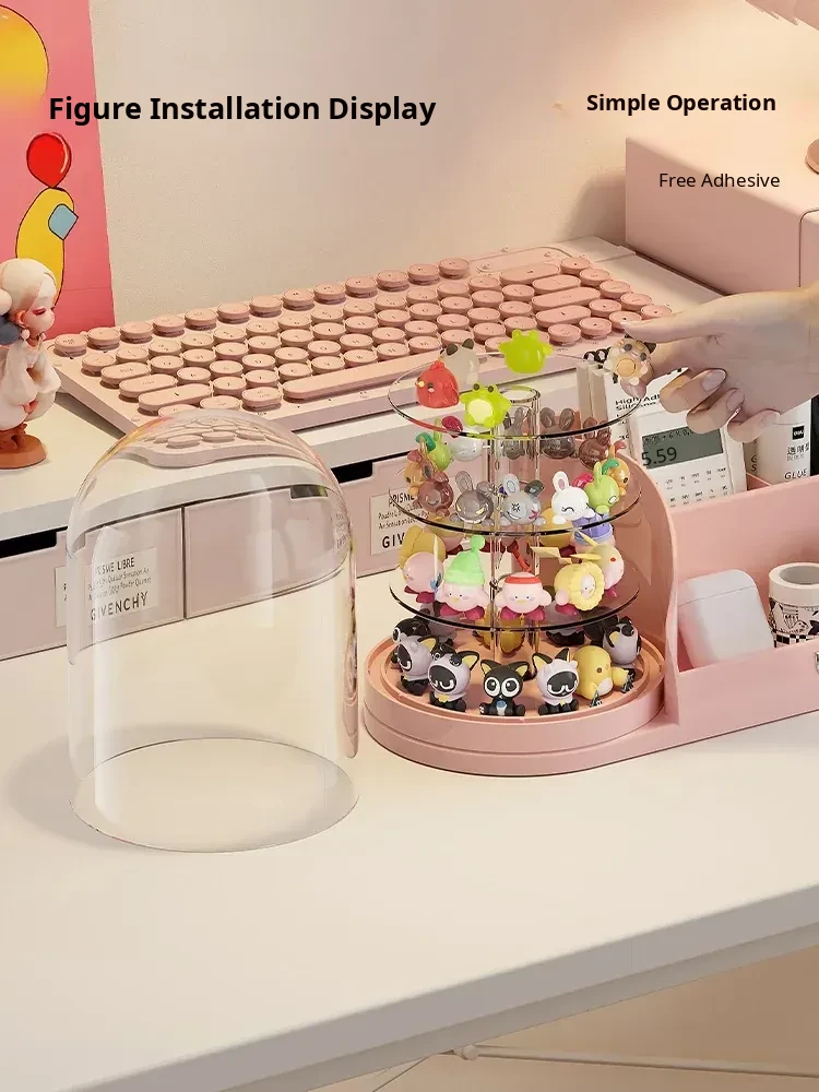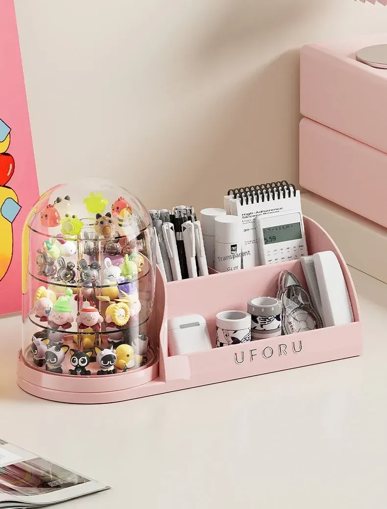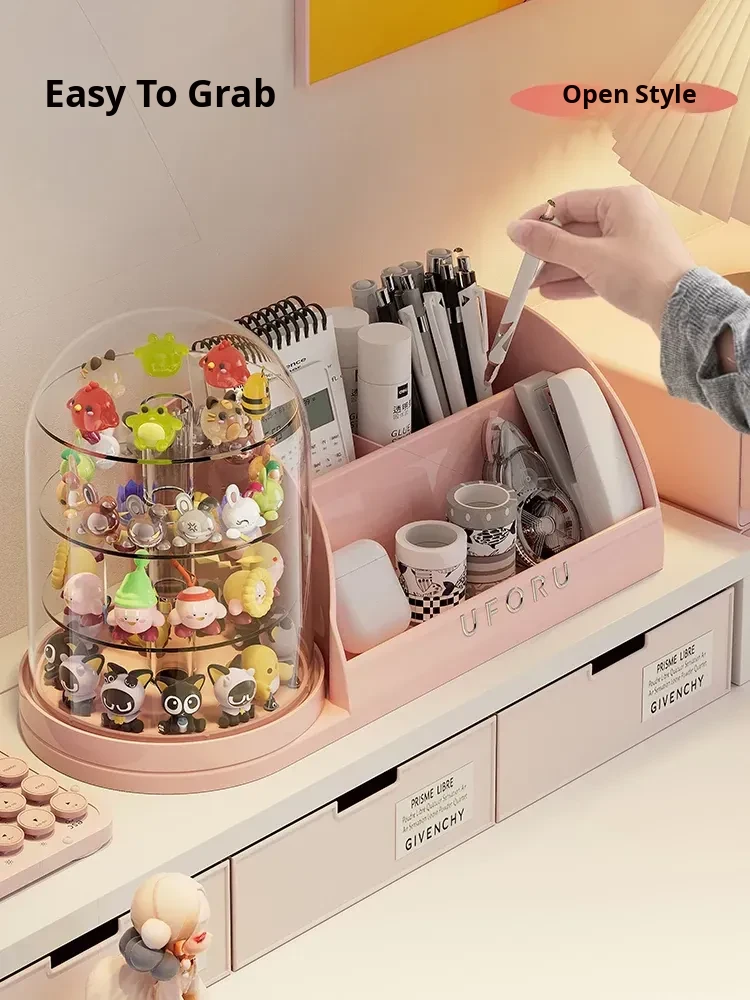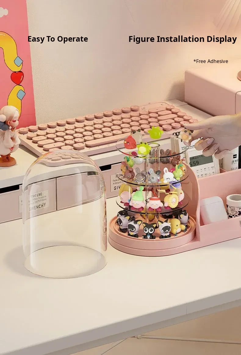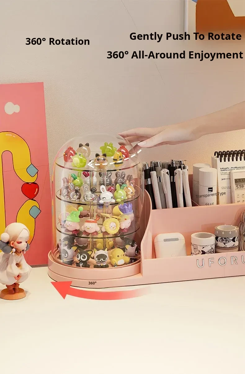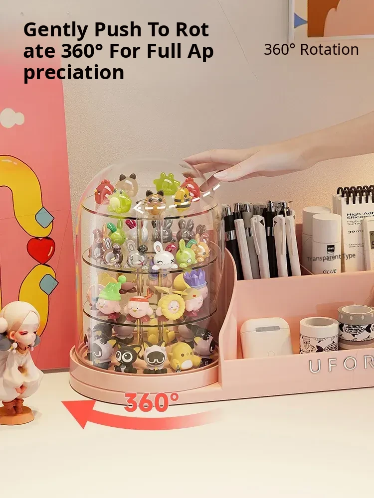 Multifunctional Cute Rotating Desktop Organizer Box - Dustproof Storage Container with Lid for Students, Dorms, and Offices