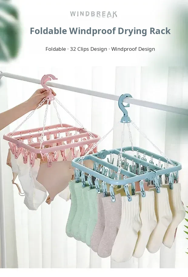 Multifunctional Windproof Clothes Drying Rack - Round Baby and Children's Sock Hanger with Multiple Clips - Ideal Indoor Underwear and Garment Organizer