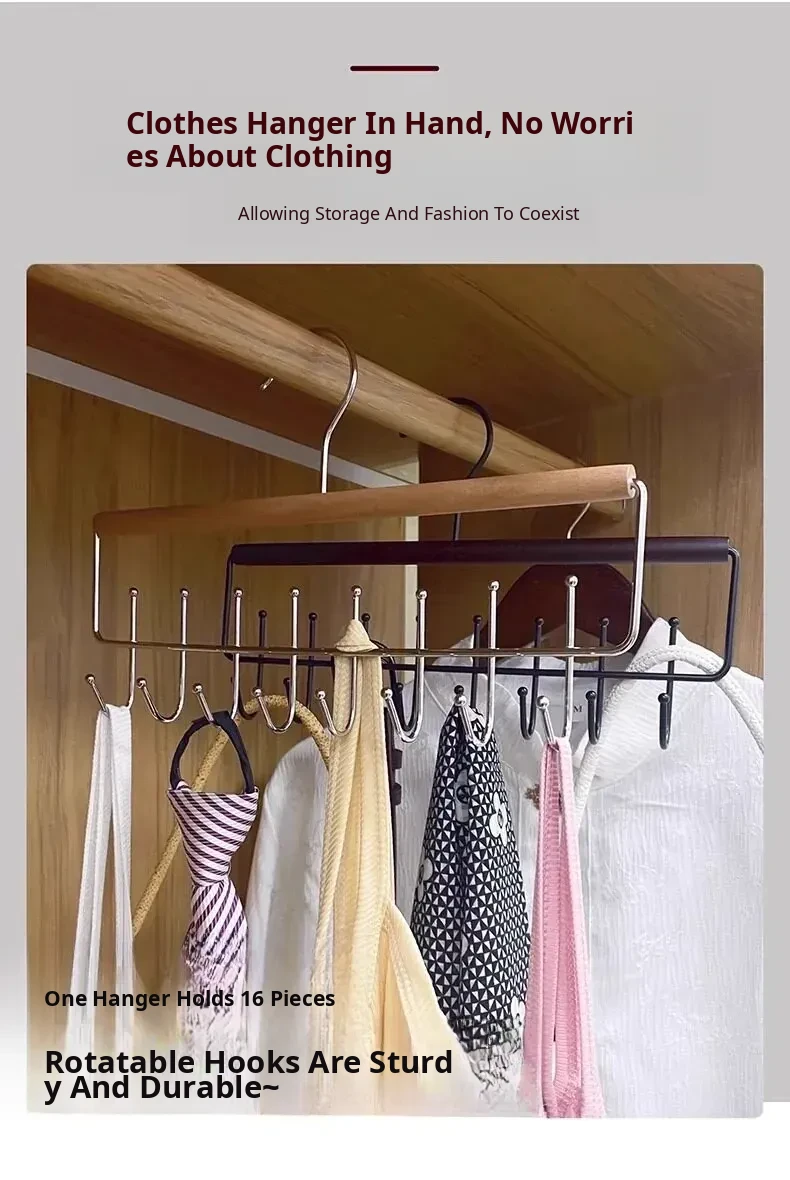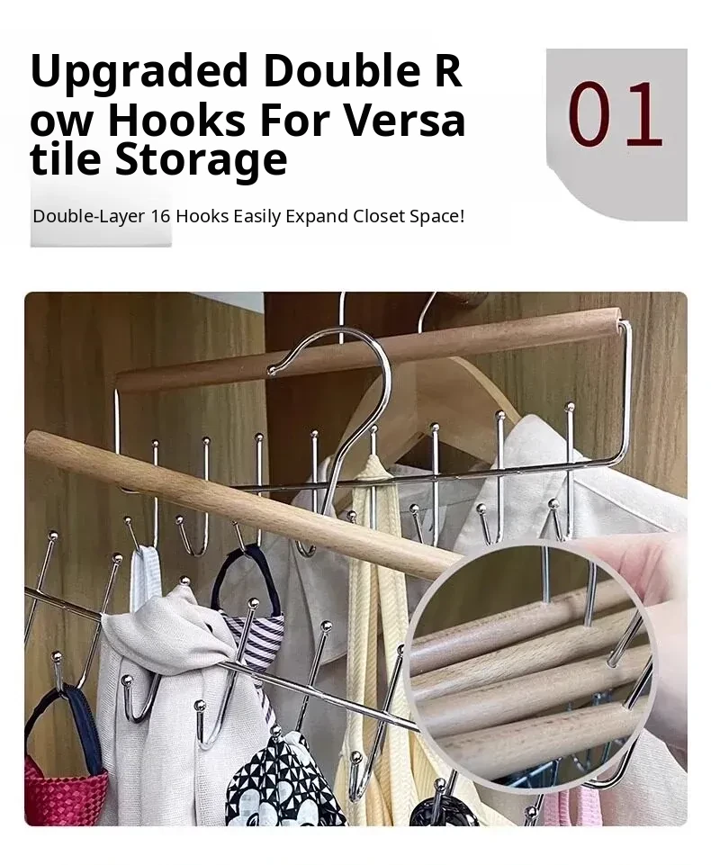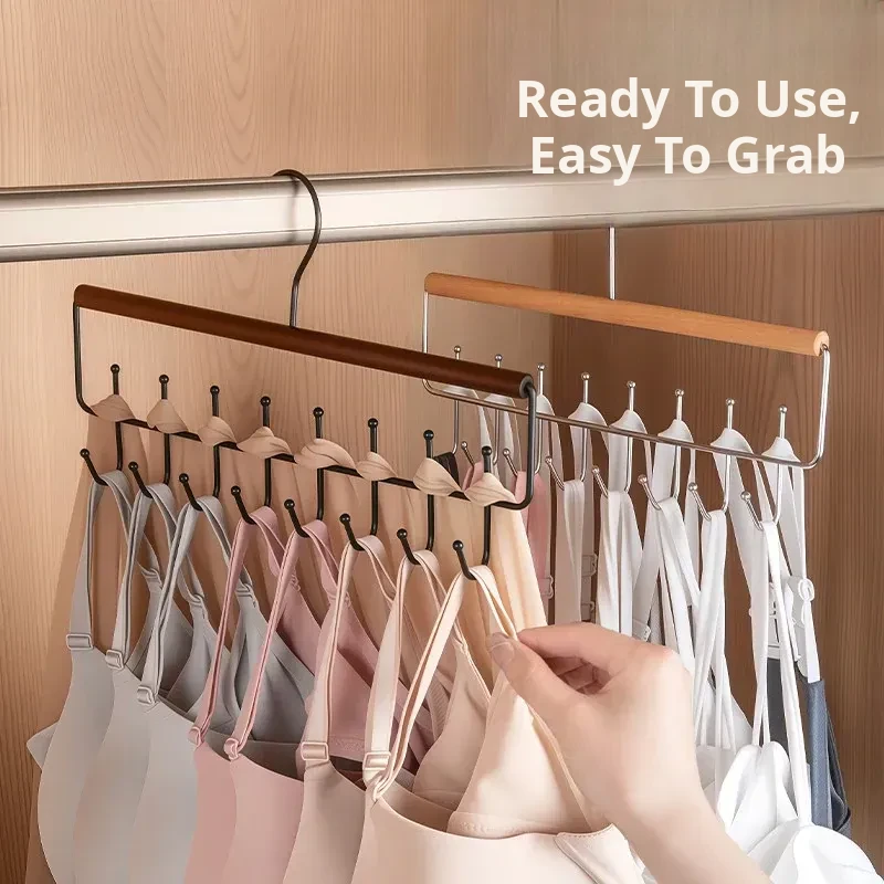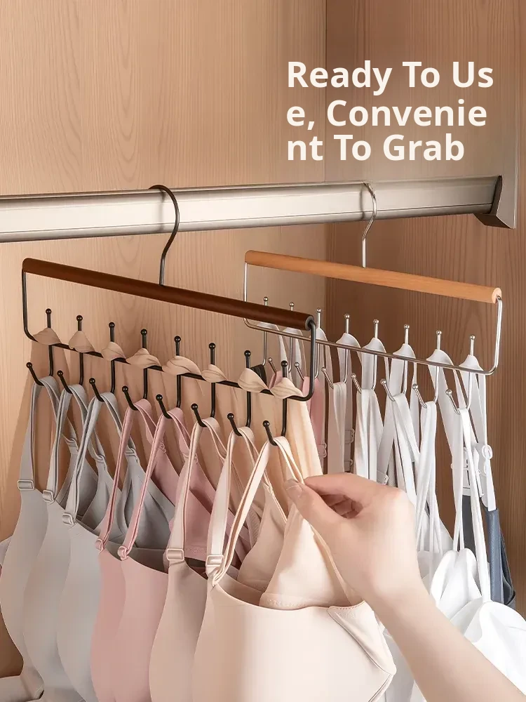 Upgraded Double Row Model❤️Natural Wood Color, Single Pack❤️Single Hanger Can Hold 16 Pieces of Lingerie and Camisoles