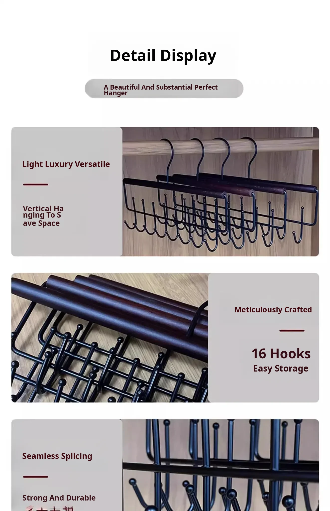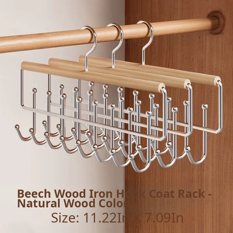 ⭐Multi-Functional Solid Wood Double Row Hanger - Holds 16 Items (Heavy-Duty, Strong & Durable)