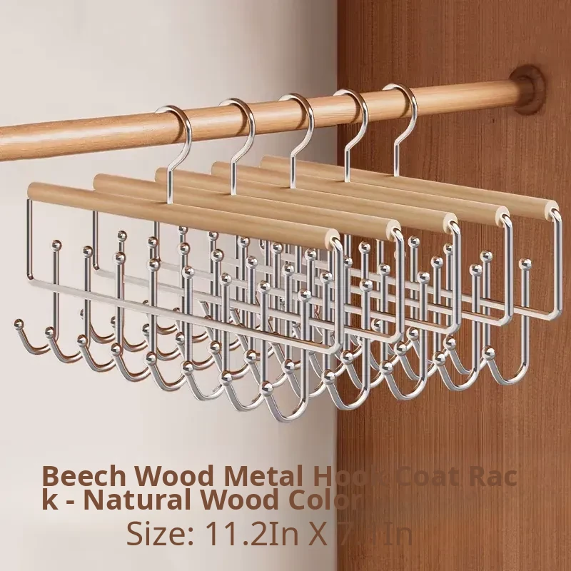 Multi-Functional Wooden Hanger Set - 16 Hooks for Organizing Lingerie, Tank Tops, and More - Perfect for Home and Dorm Use - Space-Saving Wave Design Clothes Hanger