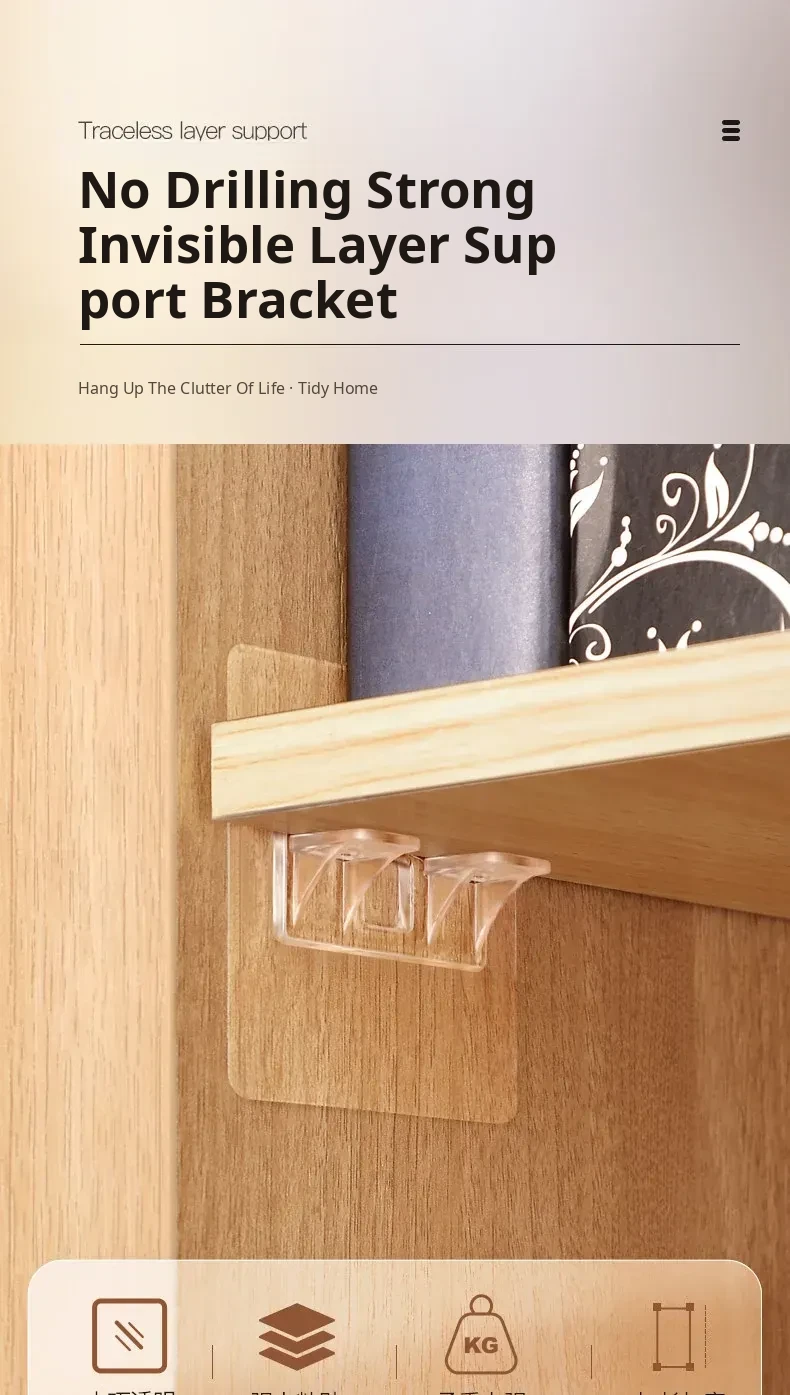 No-Drill Clothes Cabinet Shelf Support - Powerful Adhesive Bracket for Seamless Installation, Sturdy and Reliable Weight-Bearing Organizer for Your Closet.