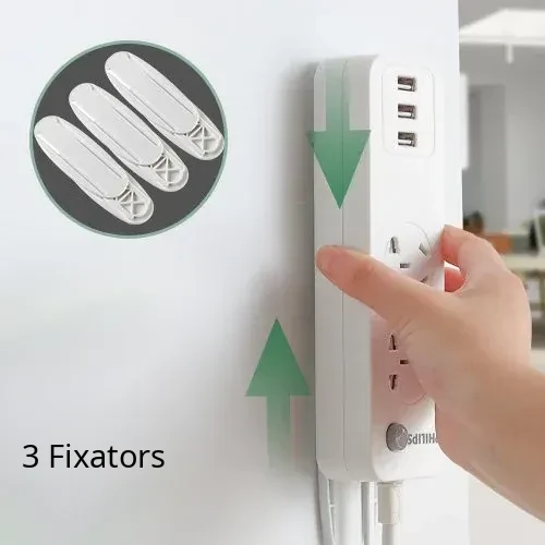 No-Drill Power Strip Holder - Wall-Mounted Organizer for Router and Socket, Easy Installation with Adhesive Clips, Perfect for Home Use